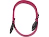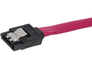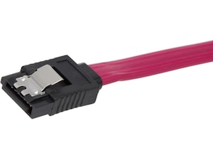 iiglo SATA-kabeln stödjer både SATA 6, SATA III, SATA II och SATA I. På ovansidan av kontakten sitter en låsflik som håller fast kontakten på hårddisken. En SATA-kabel (Serial ATA) använder sig av databuss-teknik för att överföra data från/till hårddisken och moderkortet inuti ett chassi.