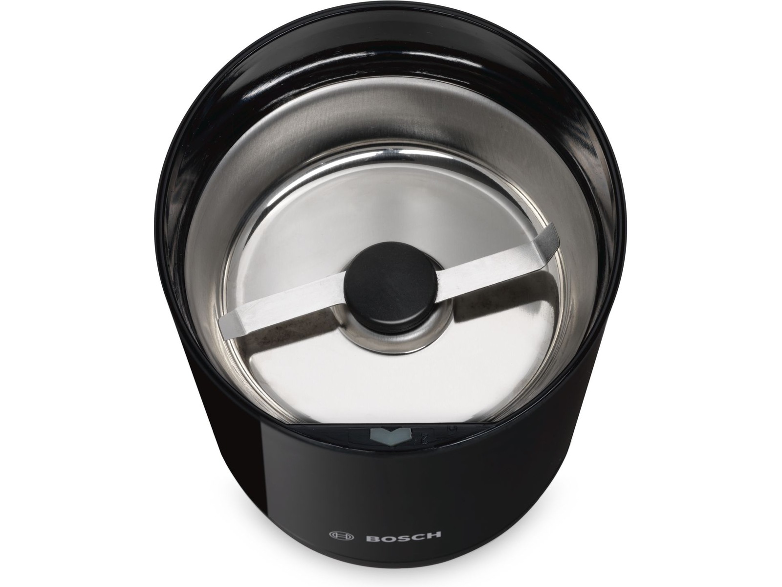 Bosch TSM6A013B Kaffekvarn Färskmalda bönor för mer arom Kvarn i rostfritt stål för hög precision och malning Maler enbart om locket är stängt Säkerhetsbrytare 75 g bönor