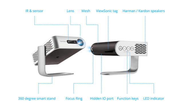 Dubbla Harman Kardon Bluetooth-högtalare tillhandahåller ett skarpt och tydligt ljud för multimediainnehåll, medan det korta projektionsavståndet kan visa stora bilder i små utrymmen. Integrerad WiFi-anslutning gör att du kan streama från dina favoritinnehållsleverantörer - vilket gör M1+ till ett utmärkt alternativ för att dela och visa videor och annat multimediainnehåll. M1+ mångsidiga anslutningsalternativ inkluderar en MicroSD-kortplats, USB Type A och USB Type C-anslutningar.