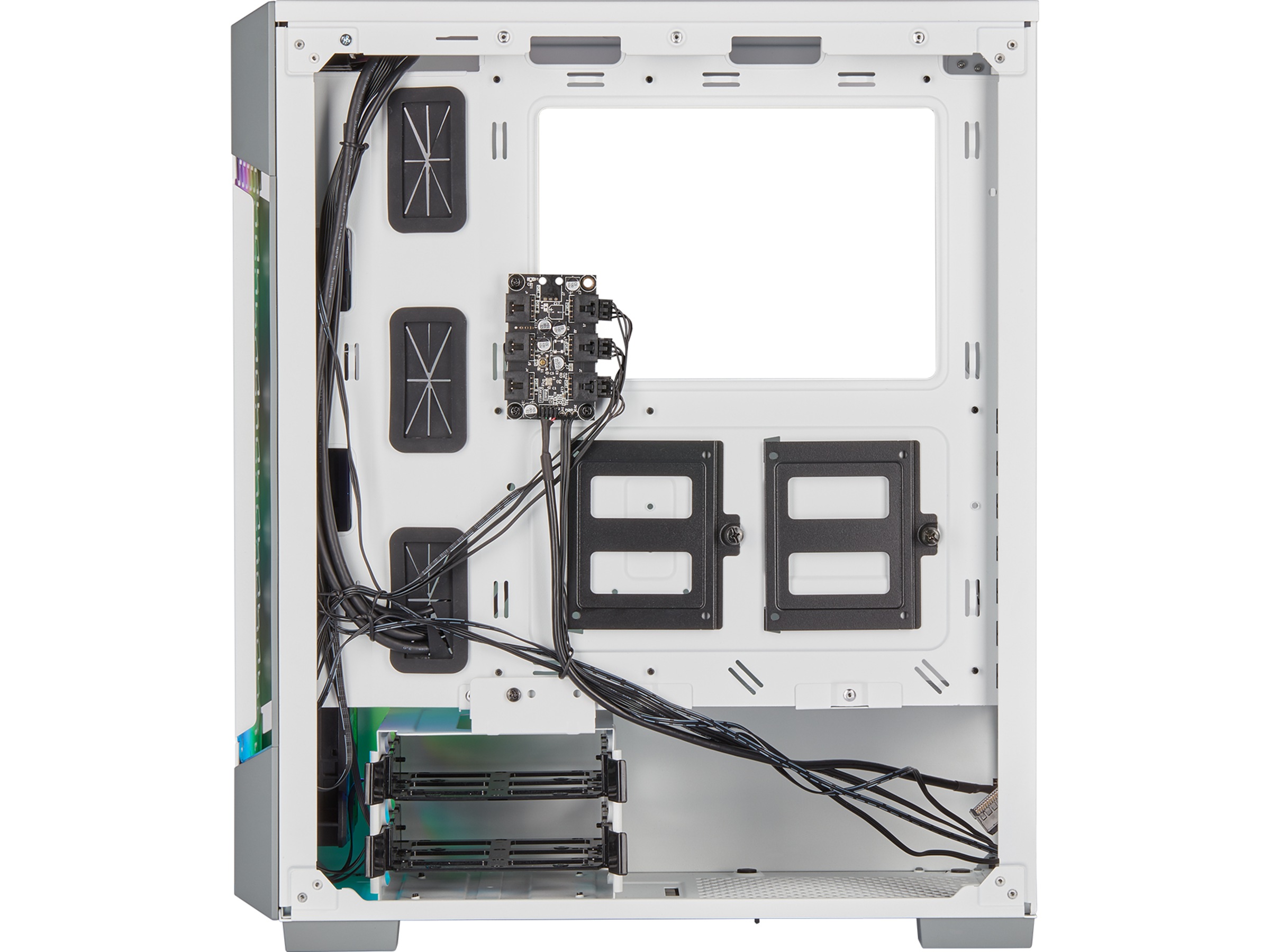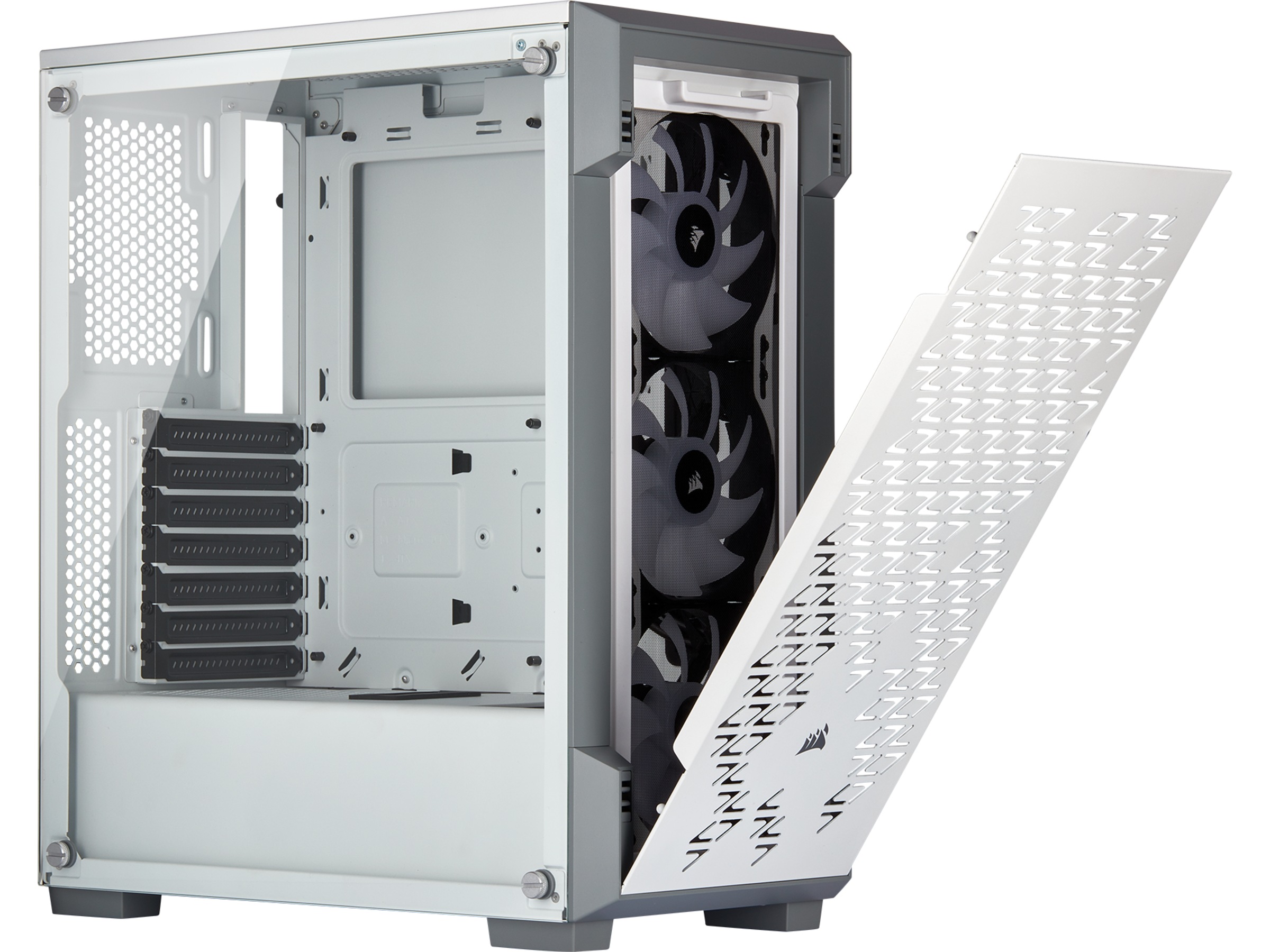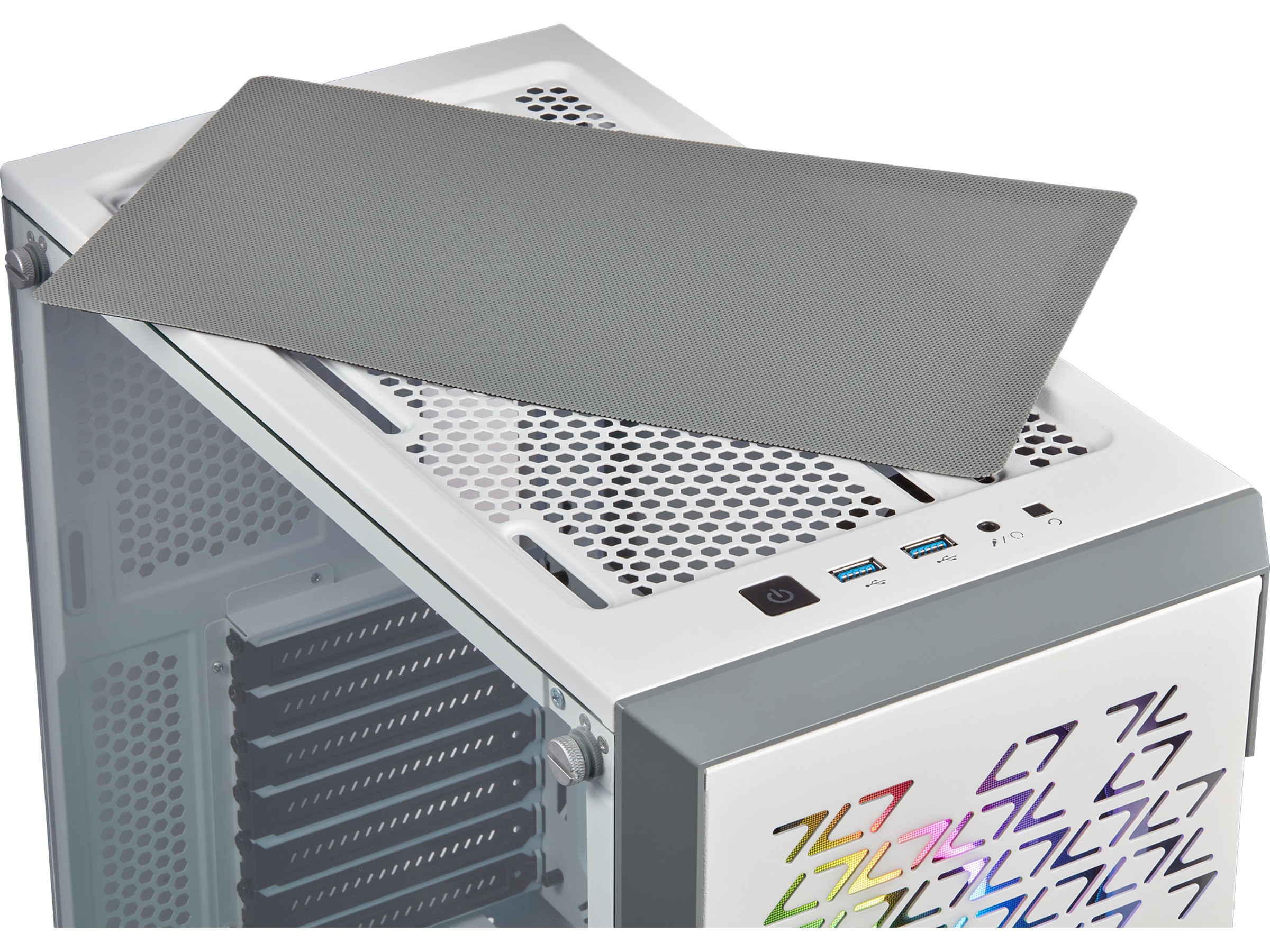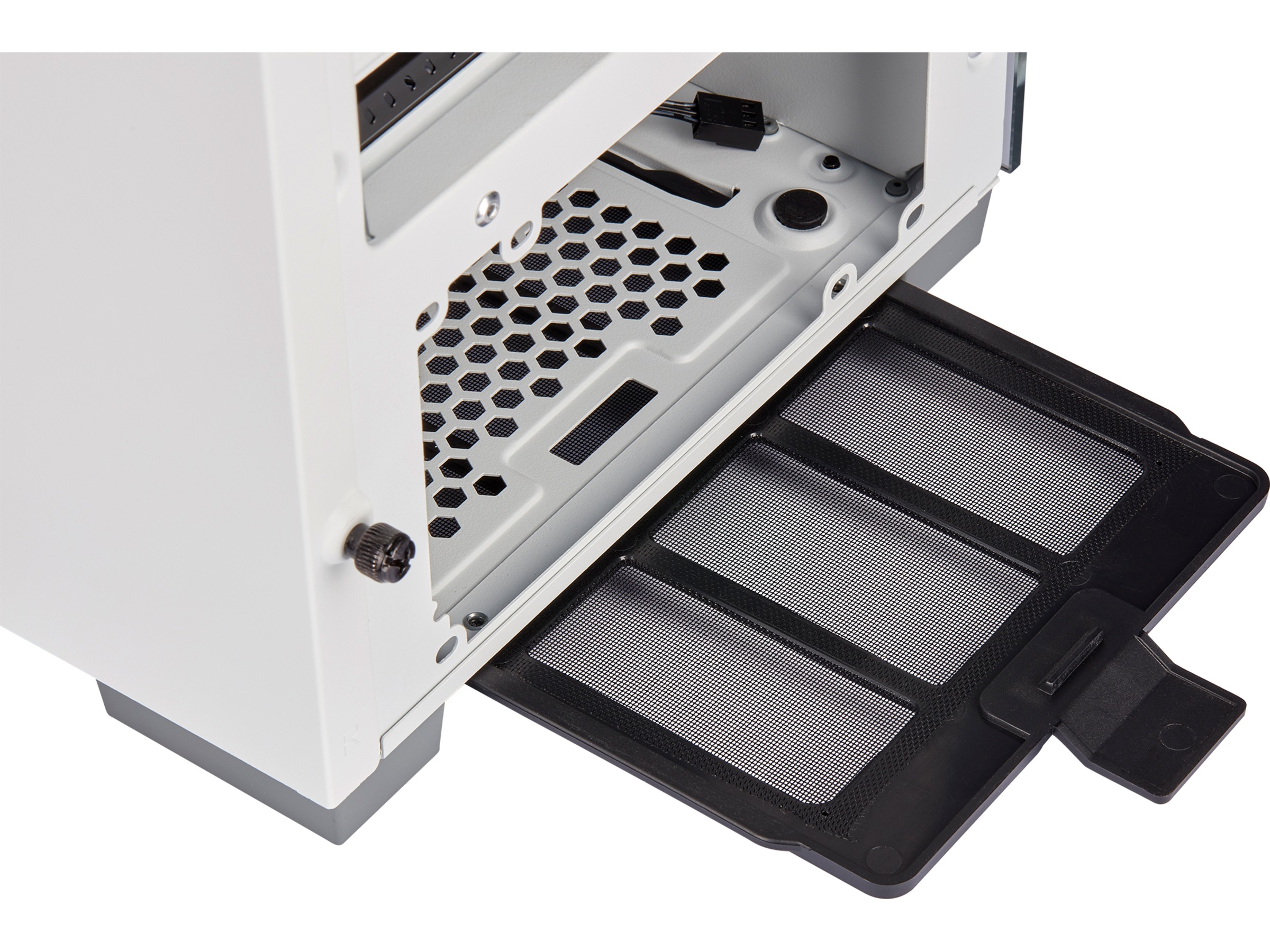 Stöder 240 mm element högst upp, Dammfilter till överdel, Främre dammfilter, Stöder 120 mm element bak, PSU-dammfilter, Stöder 280/360 mm radiator i frontpanel |