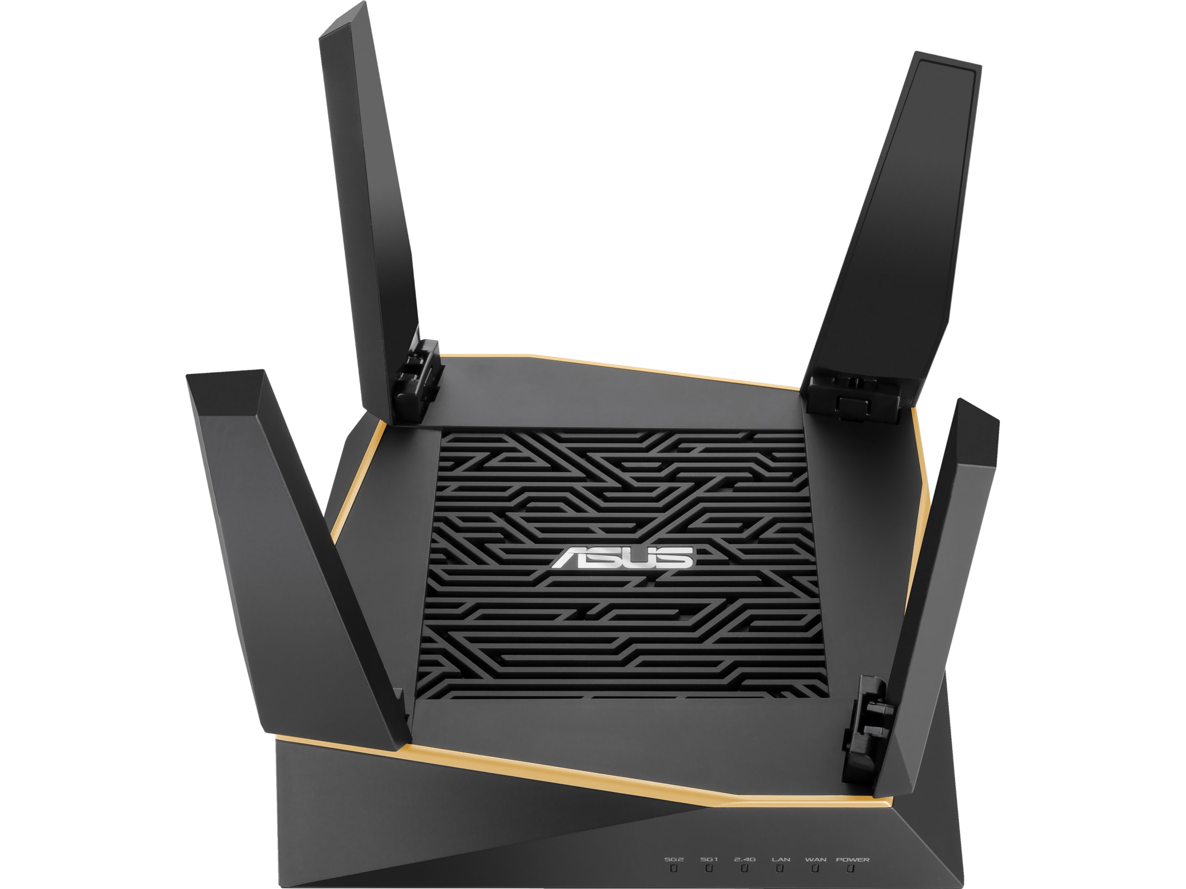 AX6100 Tri-band WiFi 6 (802.11ax) router - stödjer AiProtection Pro nätverkssäkerhet, AiMesh mesh WiFi-system, inbyggd wtfast för spel, VPN-inställning, Adaptive QoS och DFS-band.