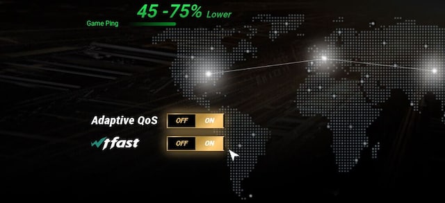 RT-AX92U:s Adaptive QoS prioriterar spelpaket för smidigare onlinespel. Den har också inbyggd wtfast® för att söka och säkra kortast möjliga väg mellan din spelenhet och spelservern, vilket minimerar spelping och lagg.