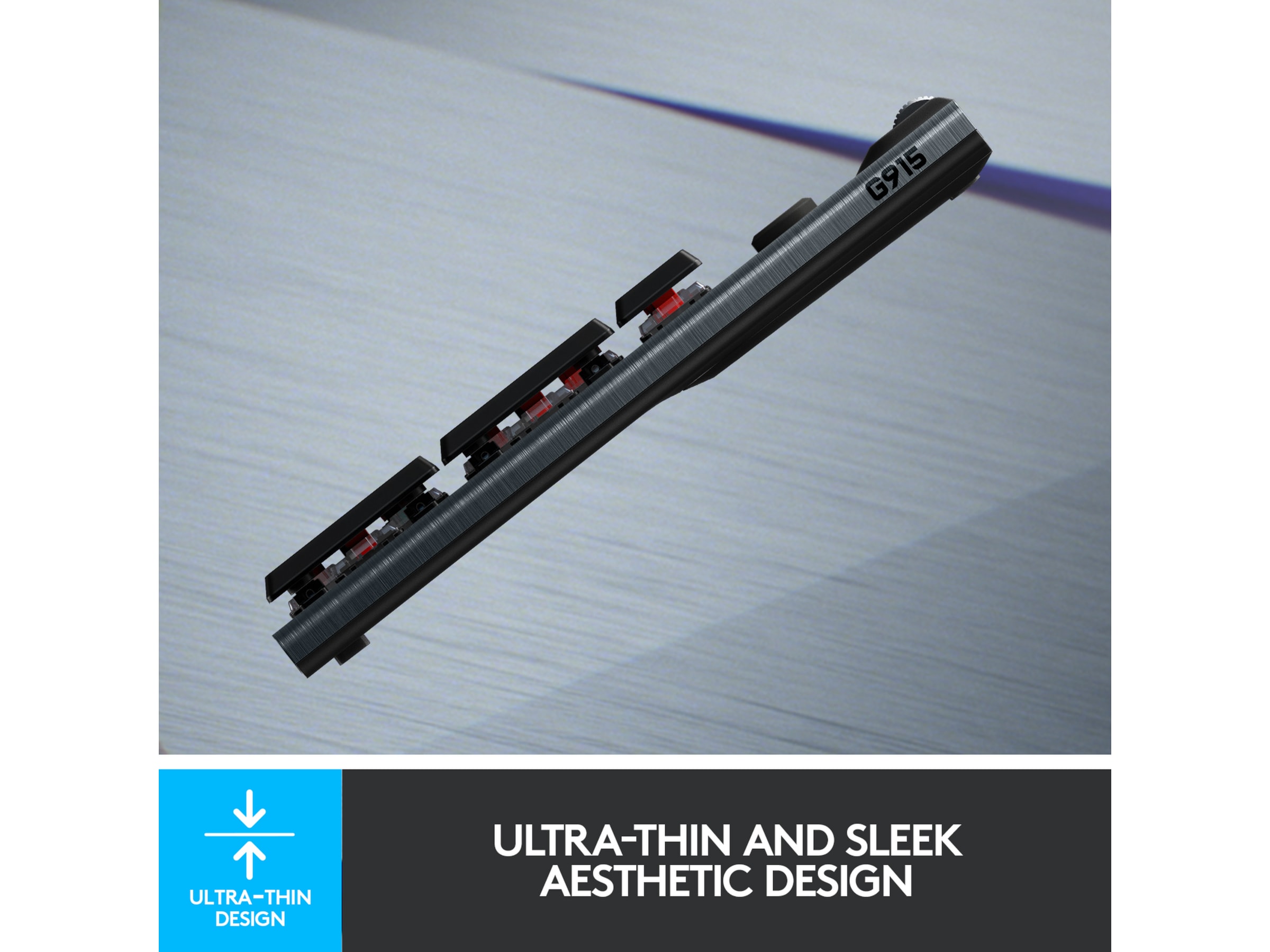 G915 använder vackert utformad aluminiumlegering i flygplansklass för att ge en otroligt tunn men ändå stark och hållbar design