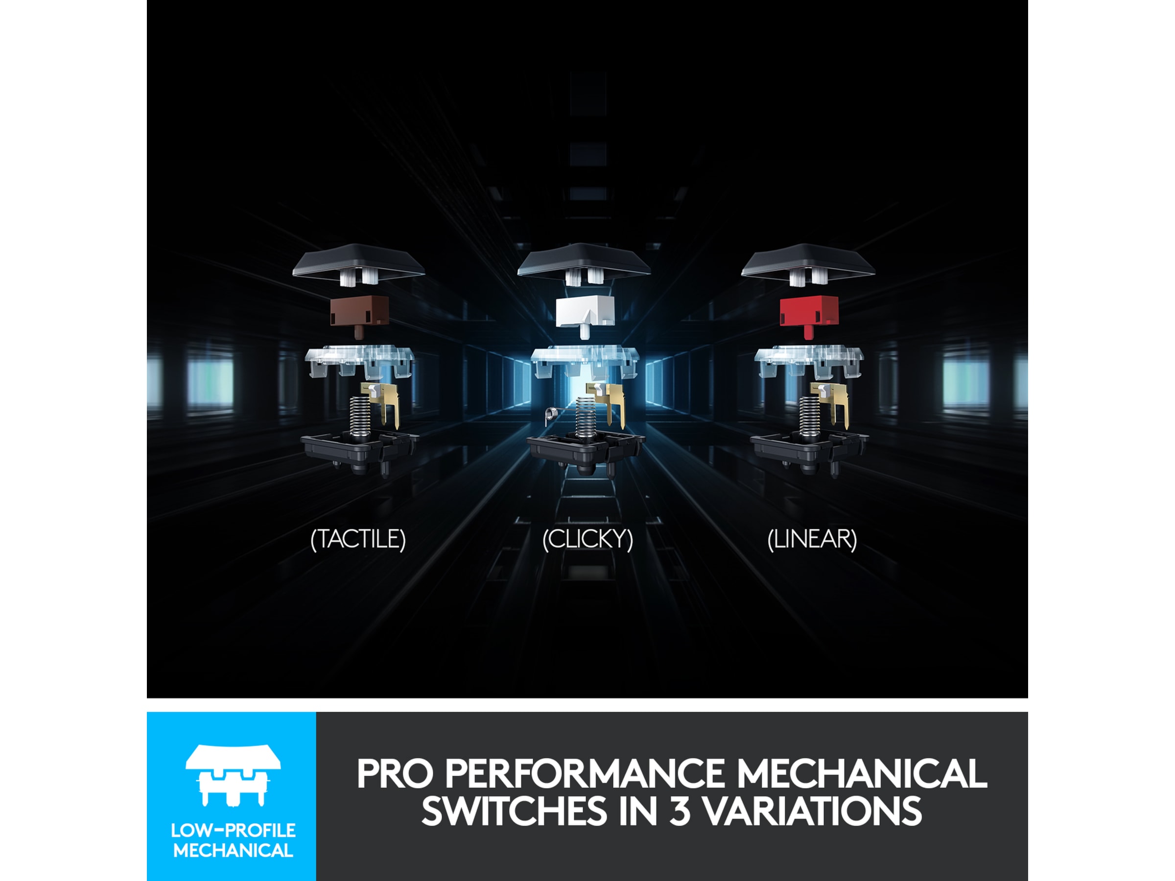G915 är en ny kategori av trådlösa mekaniska speltangentbord med tre val av diskreta GL-brytare och 1 ms trådlös LIGHTSPEED i proffsklass. Levererar 30 timmars oavbrutet spelande på en fulladdning.* Helt anpassningsbar och avancerad LIGHTSYNC RGB-teknik för varje tangent för att synkronisera belysningen till innehållet.