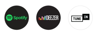 Spela populära musiktjänster som Spotify, Amazon Music och Deezer på din Portable Smart Speaker överallt där du har Wi-Fi-anslutning. På andra platser kan du använda Bluetooth för att lyssna på det som din mobiltelefon eller surfplatta kan spela. Apple-användare kan också använda AirPlay 2 för att spela upp ljud från sina enheter.