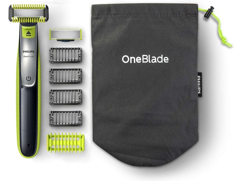 Philips OneBlade Face + Body trimmar, redigerar och rakar alla hårlängder. Du får ett blad för ansiktet och ett med hudskydd för kroppen. Du behöver inte använda ytterligare verktyg. OneBlade gör jobbet.