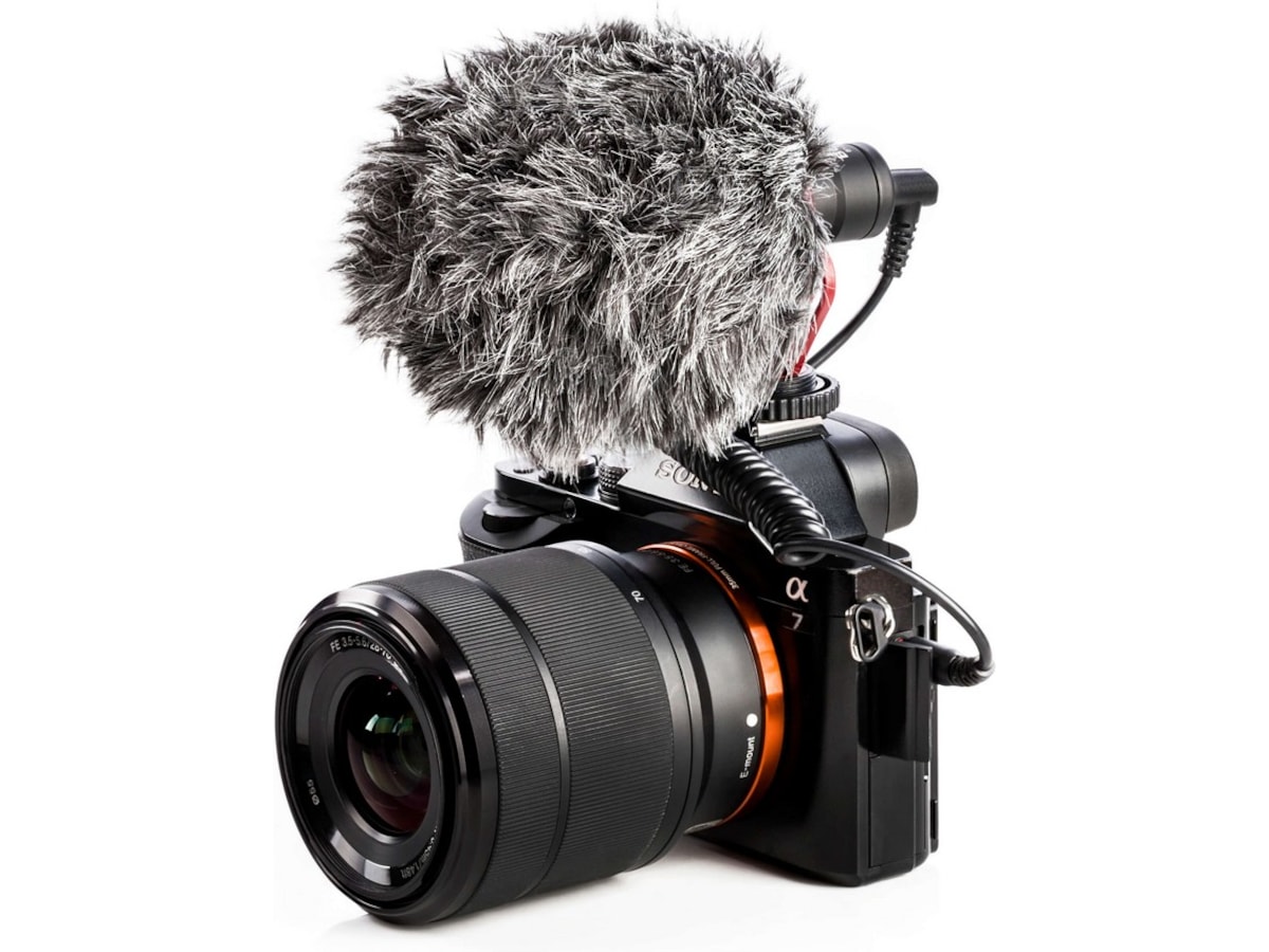 Anti Shock-fäste, kabel, vindskydd av fuskpäls och fodral ingår
