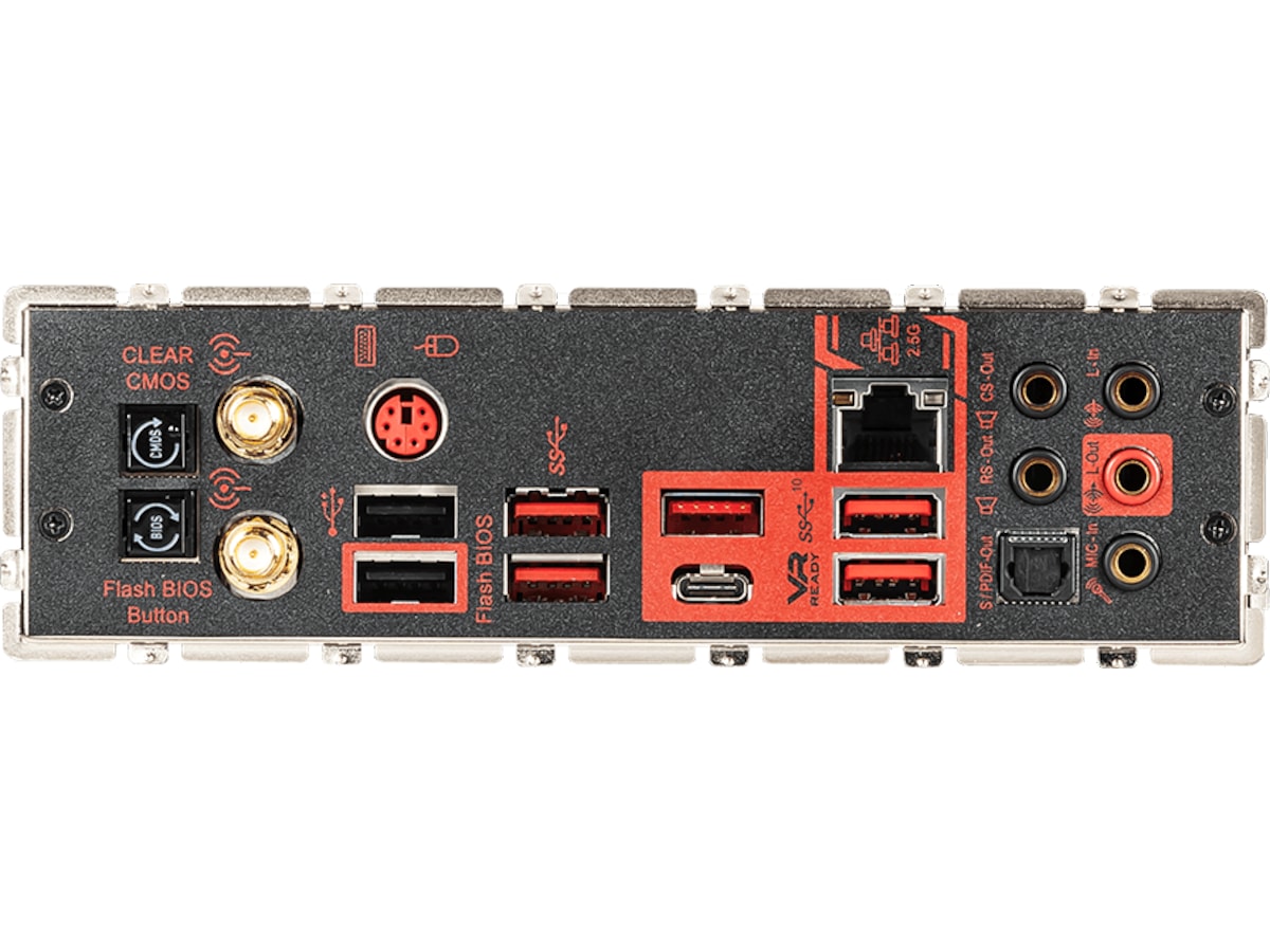 3 x USB 3.2 Gen 2, 2 x USB 2.0, 1 x mikrofon - mini-jack, 1 x LAN (2.5Gigabit Ethernet), 1 x ljudingång - mini-jack, 1 x ljudutgång - mini-jack, 1 x TOSLINK, 1 x ljudutgång (bakre) - mini-jack, 1 x USB-C Gen2, 2 x USB 3.2 Gen 1, 1 x PS/2-tangentbord/mus, 1 x ljudutgång (center/subwoofer) - mini-jack |
