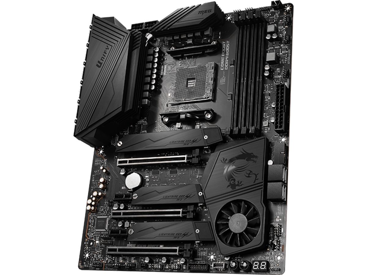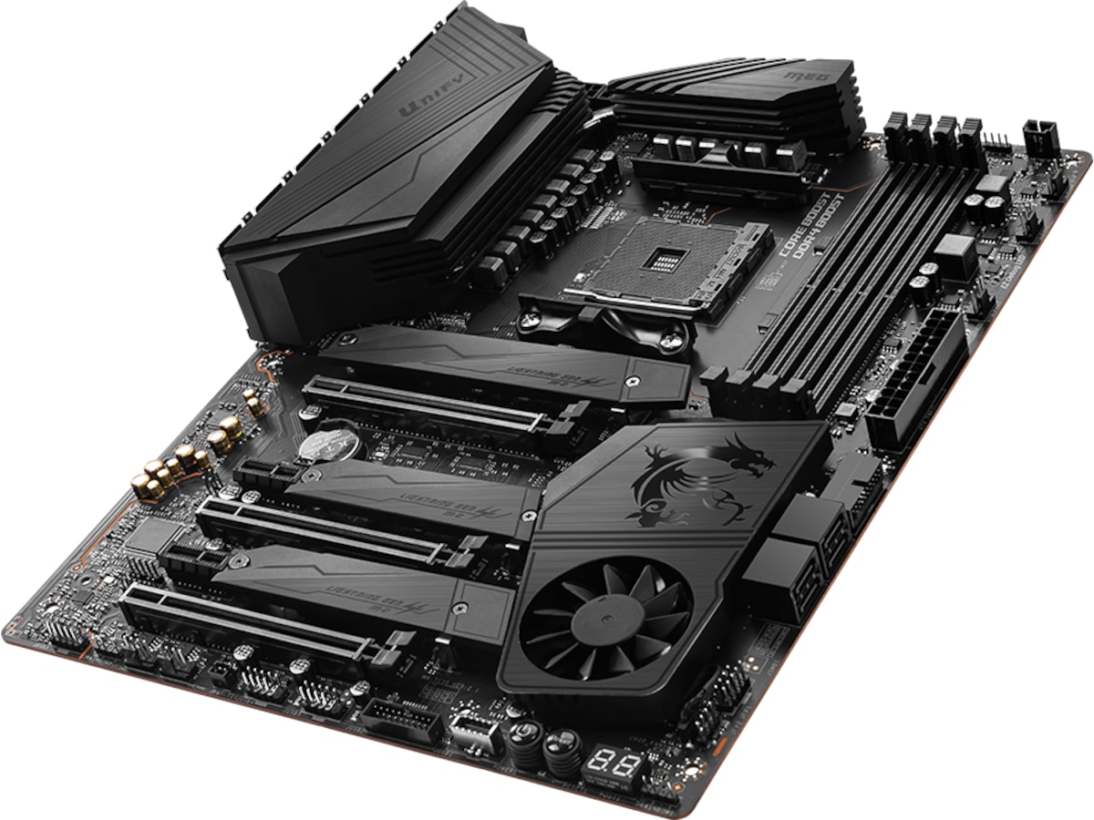 2 x PCIe 4.0 x16 (PCIe 4,0 x16/x0, x8/x8-lägen (med 3:e generationens Ryzen-processor), PCIe 3,0 x16/x0, x8/x8-lägen (med 2:a generationens Ryzen-processor), PCIe 3,0 x8/x0-läge (med Ryzen-processor med Radeon Vega Graphics/2:a generationens Ryzen-processor med Radeon), 4 x DIMM 288-stift, 1 x PCIe 4.0 x16 (x4-läge), 2 x PCIe 4.0 x1, 1 x CPU |