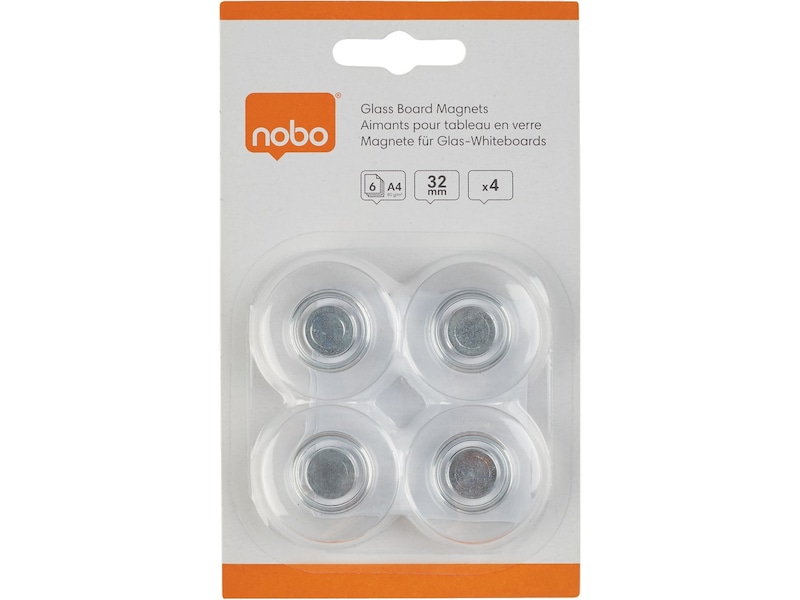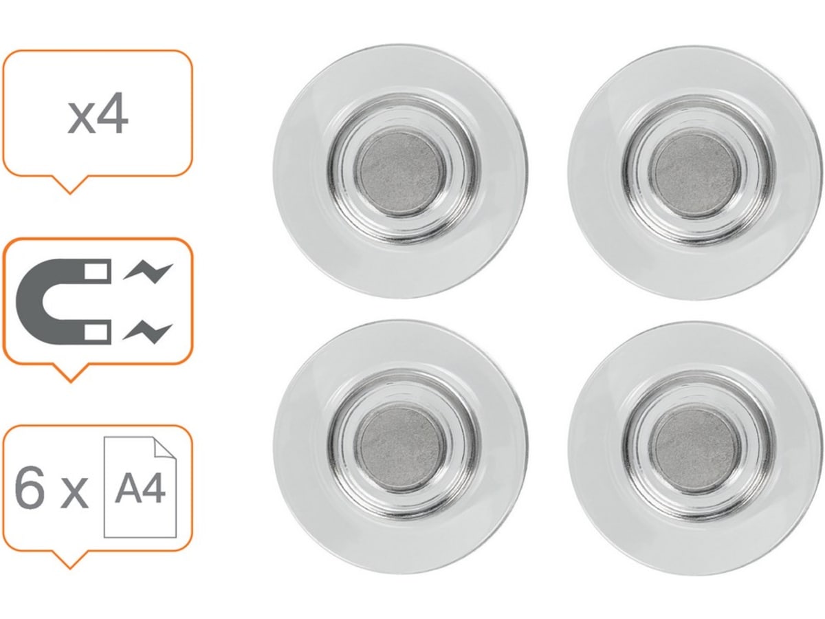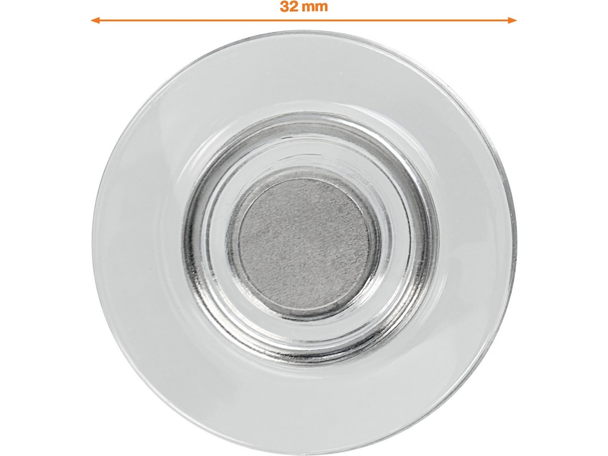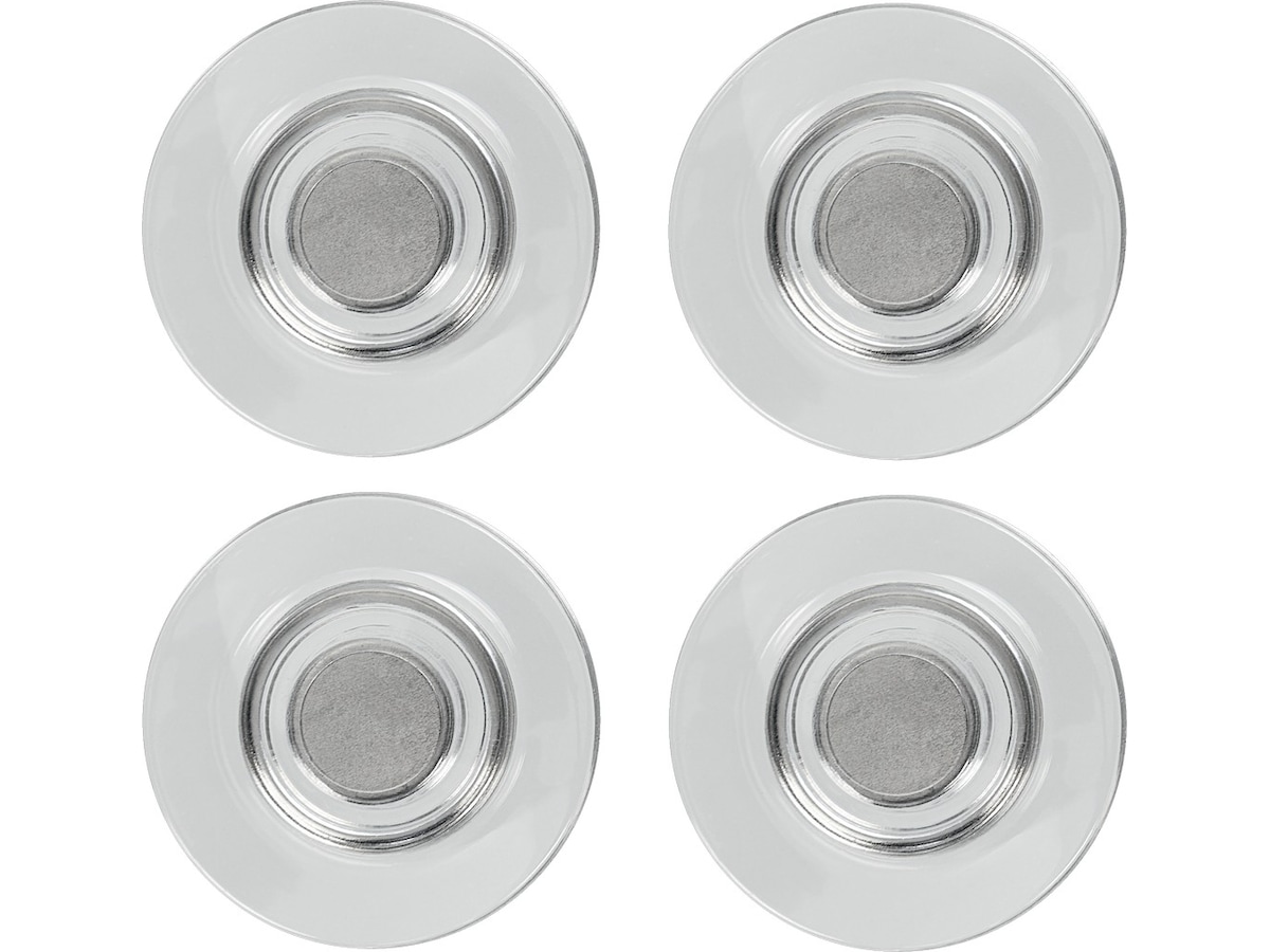 Extra kraftiga magneter för användning på glastavlor. Förpackning med 4 st Runda magneter 32 mm.