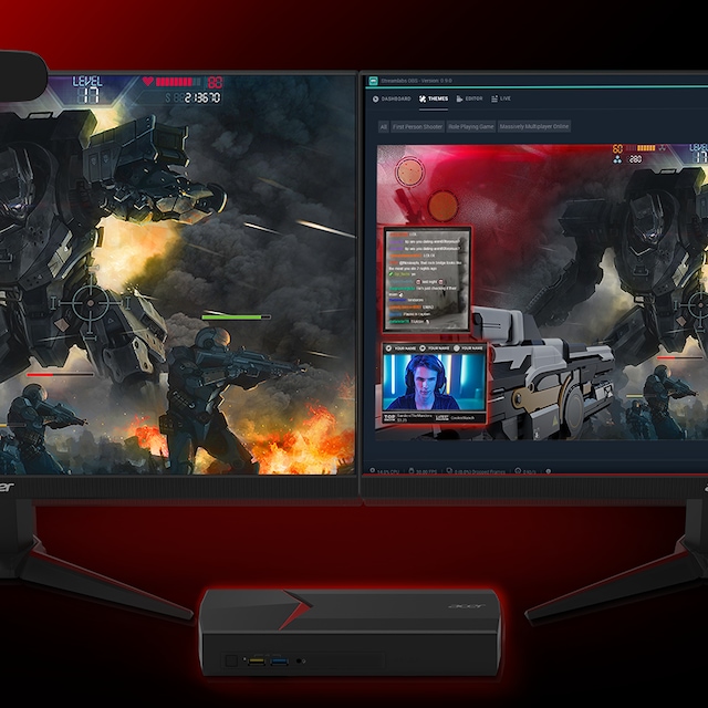 Nitro NS-600 har en HDMI-ingång, en USB-C-port, USB, en ingång för hörlurar/mikrofon samt en Ethernet-ingång. Dessutom har NS-600 en Thunderbolt 3-anslutning som gör det enkelt för dig att koppla in kraftfull maskinvara. Om du vill streama kan NS-600 fungera som en dedikerad streaming-dator med maskinvara och programvara av högsta kvalitet. Du behöver alltså inte leta efter och installera en mängd olika komponenter – det är bara att ansluta och köra.