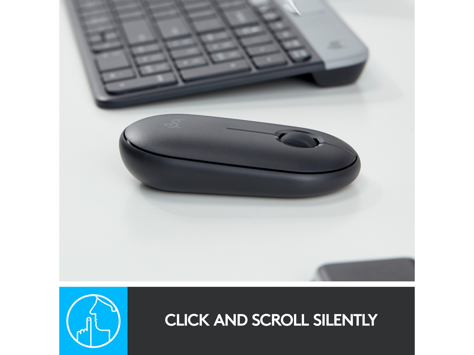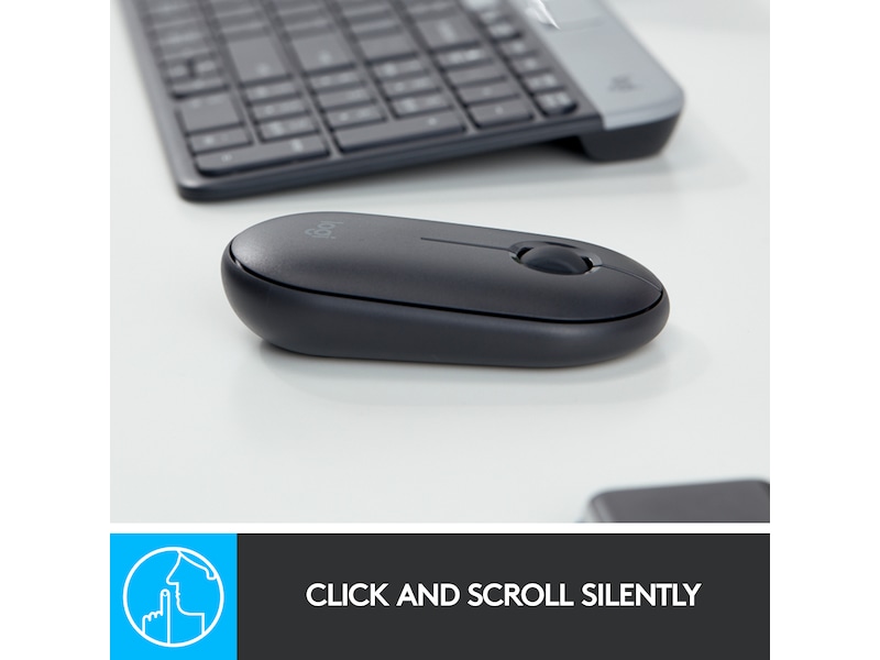 Jobba på ett café, bibliotek eller till och med ett fullsatt tåg utan att störa människorna omkring dig. Du får samma klickkänsla som du älskar, med cirka 90 % mindreljud1.Det breda rullningshjulet i gummi rullar också tyst.