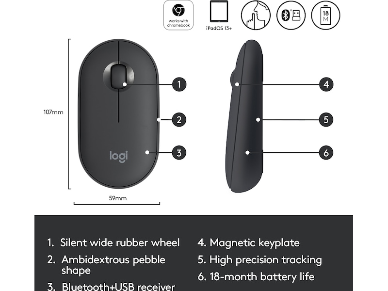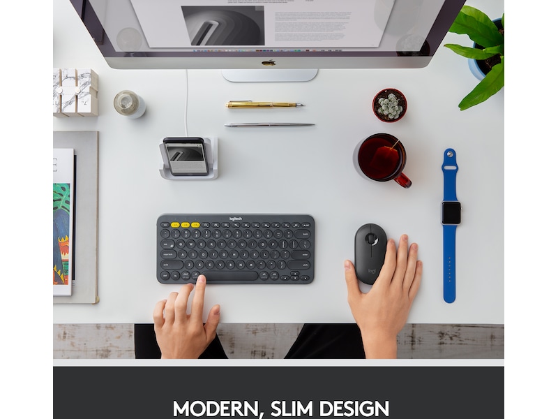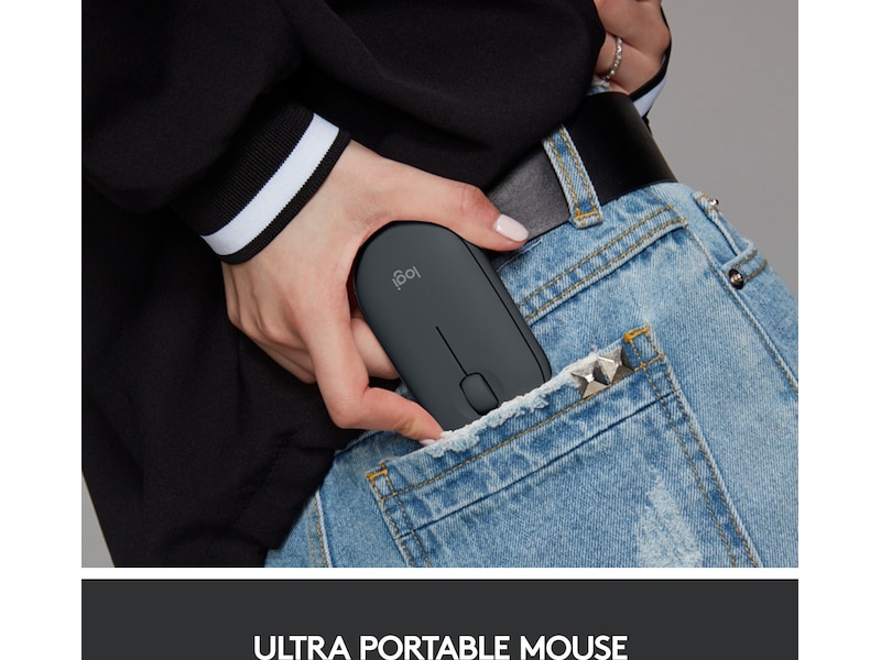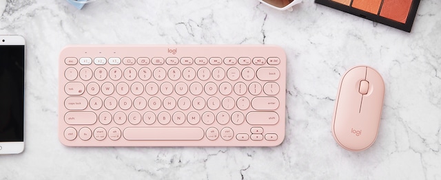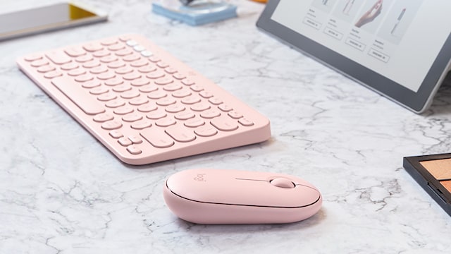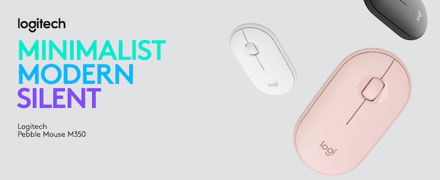Välj Logitech Pebble M350 i naturvit, grått, eller rosa för att perfekt matcha resten av tillbehören.