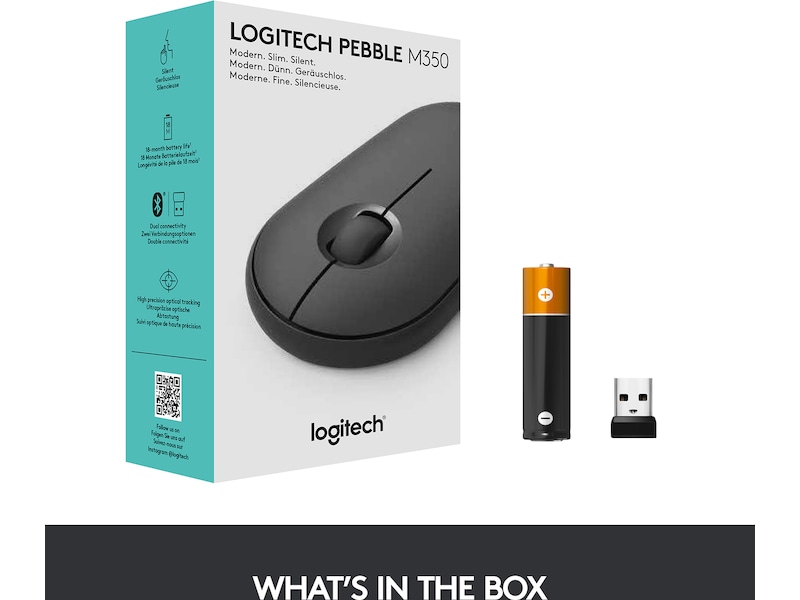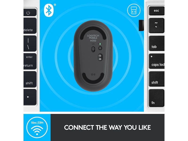 Den moderna designen hos Logitech Pebble M350 passar din livsstil, gör skrivbordet snyggare och är liten nog att stoppas i väskan och ta med till kaféet.