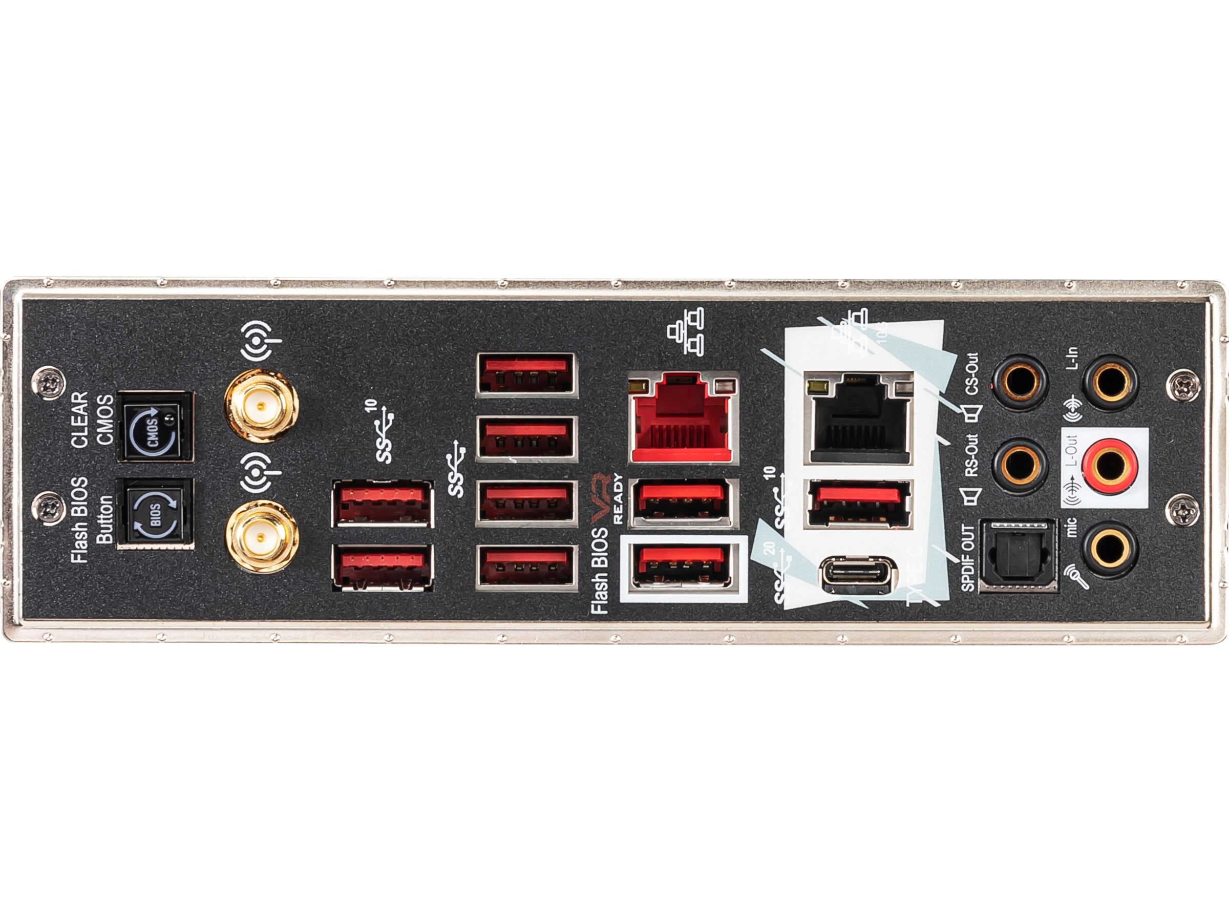 1 x LAN (Gigabit Ethernet), 1 x ljudutgång (center/subwoofer) - mini-jack, 1 x ljudutgång - mini-jack, 1 x USB-C Gen2x2, 5 x USB 3.2 Gen 2, 1 x ljudingång - mini-jack, 1 x LAN (10Gigabit Ethernet), 1 x ljudutgång (bakre) - mini-jack, 1 x TOSLINK, 4 x USB 3.2 Gen 1, 1 x mikrofon - mini-jack |