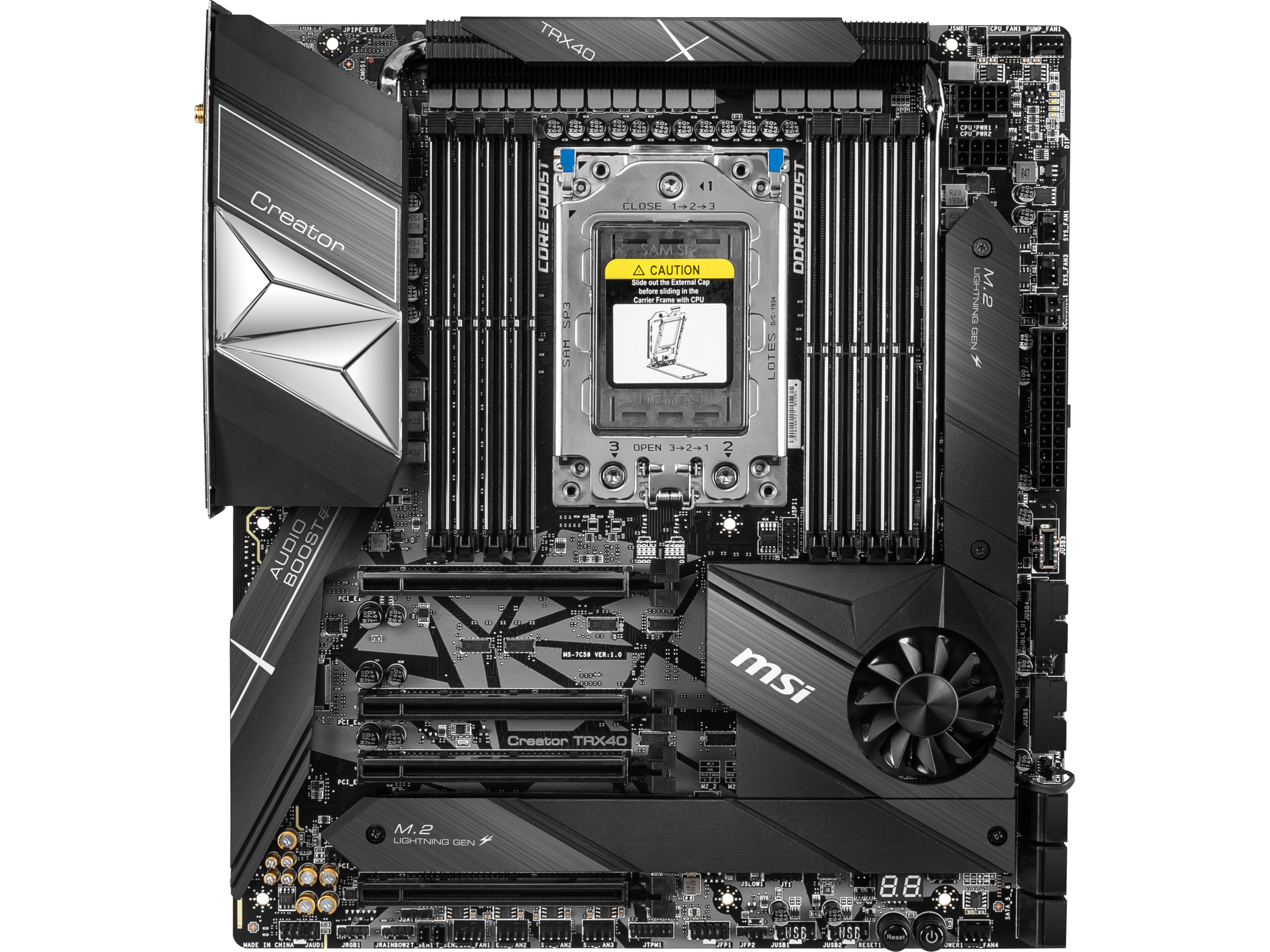 8 x DIMM 288-stift, 4 x PCIe 4.0 x16 (x16/x8/x16/x8 mode), 1 x CPU |