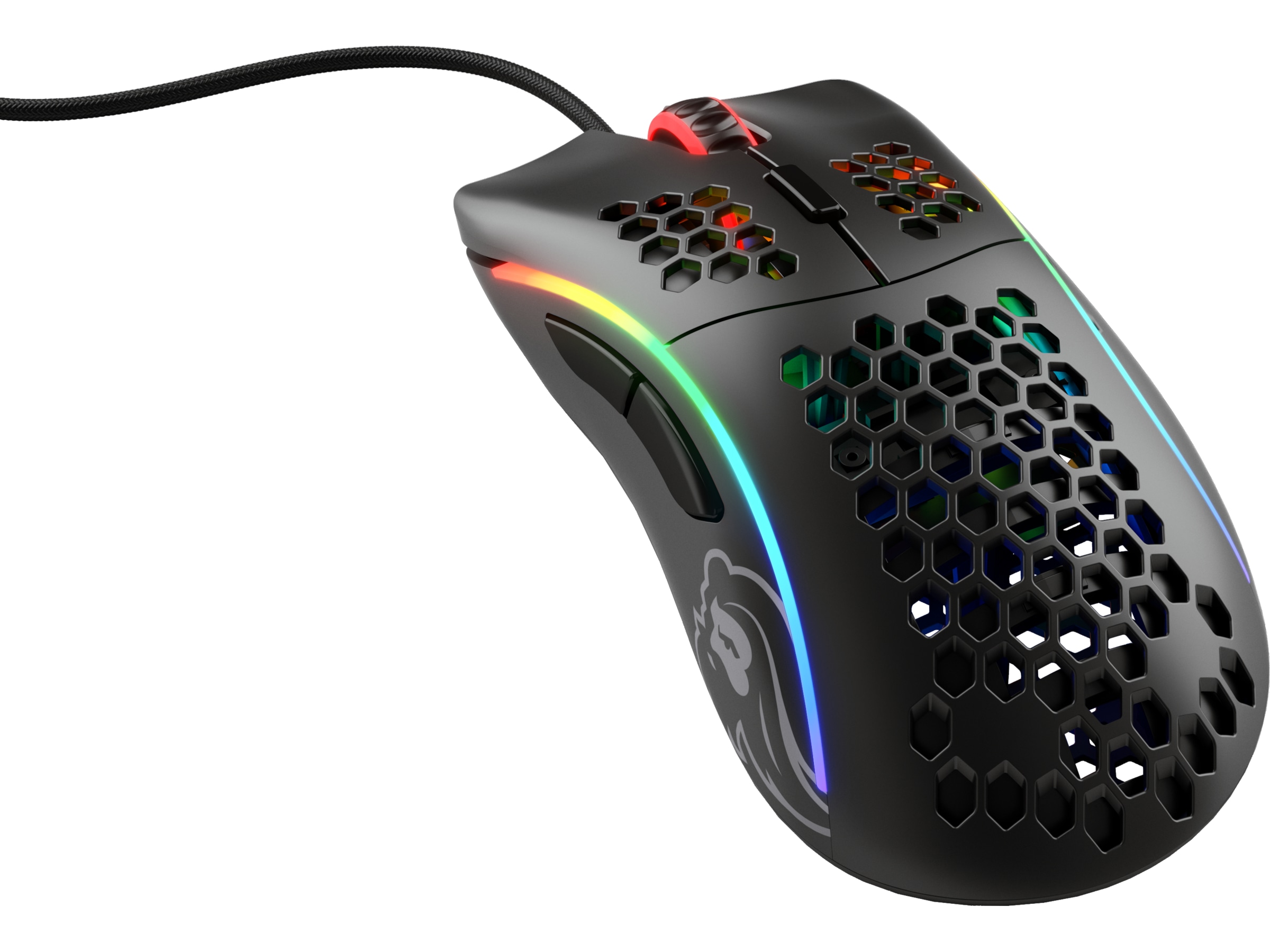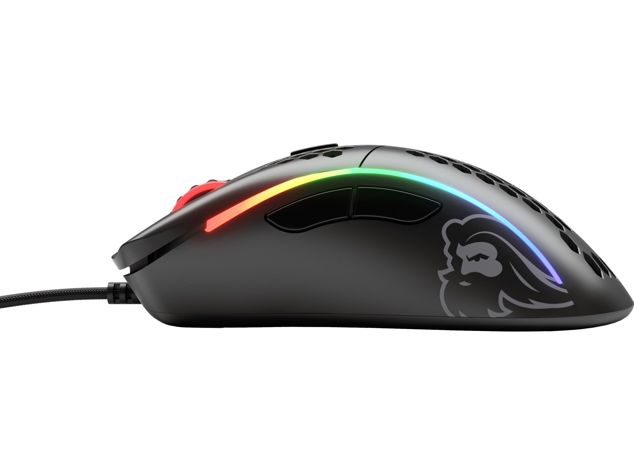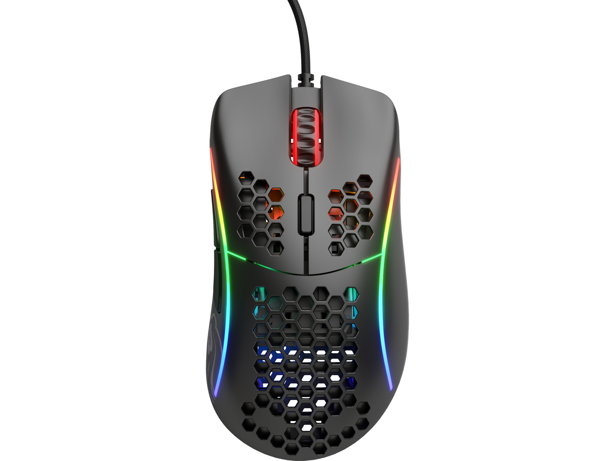 Modell D:s hölje med vaxkakastruktur är nyckeln till den fjäderlätta vikten, samtidigt som ultratålig styrka bibehålls. Du kommer knappt att märka hålen under spelets gång, men de ger ventilation som håller handflatorna svala och fräscha. Rengöringen av Modell D är enkel; använd bara en valfri luftbehållare för att hålla musen så gott som ny.