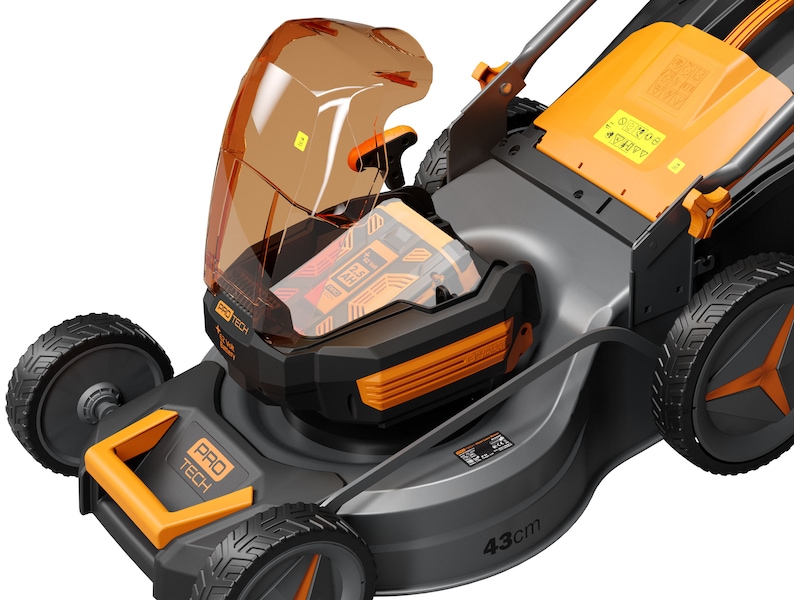 62-volts batteridriven gräsklippare med borstlös motor för bättre prestanda, längre körtid och lägre ljudnivå.