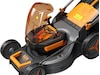 50-liters uppsamlingsbehållare. Den här maskinen är en eko-klippare, så om du inte vill använda uppsamlaren kan du samtidigt gödsla din gräsmatta. Valet är ditt, med eller utan eko-klipp. Det är som regel de som klipper gräsmattan ofta som använder uppsamlingsbehållaren, så att man kan bli av med gräset istället för att använda eko-klippningsfunktionen.
