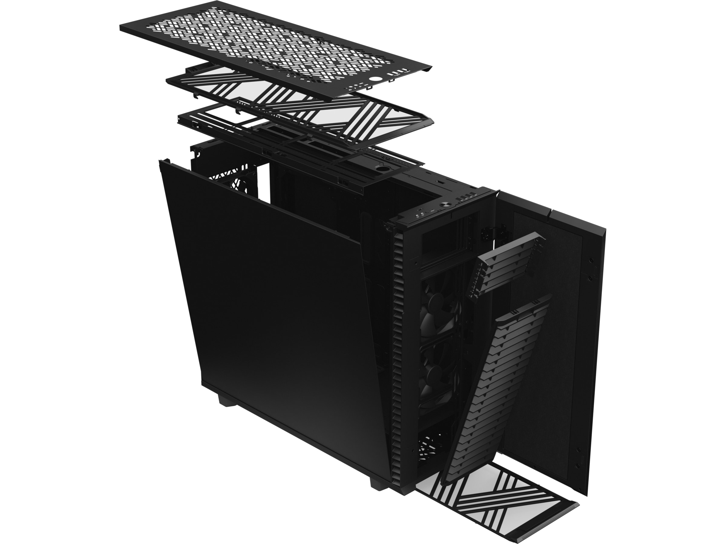 Define 7 XL sätter en ny standard för vad du kan förvänta dig av ett heltornschassi när det gäller modularitet, flexibilitet och användarvänlighet. Med sin interiör med dubbla layouter, industriell ljudisolering och en mycket mångsidig layout som stödjer de största E-ATX- och företagskorten, multi-GPU-uppsättningar, besynnerliga vattenloopar och nästan två dussin lagringsenheter, finns det inga gränser för vad du kan göra med ditt datorbygge i Define 7 XL.