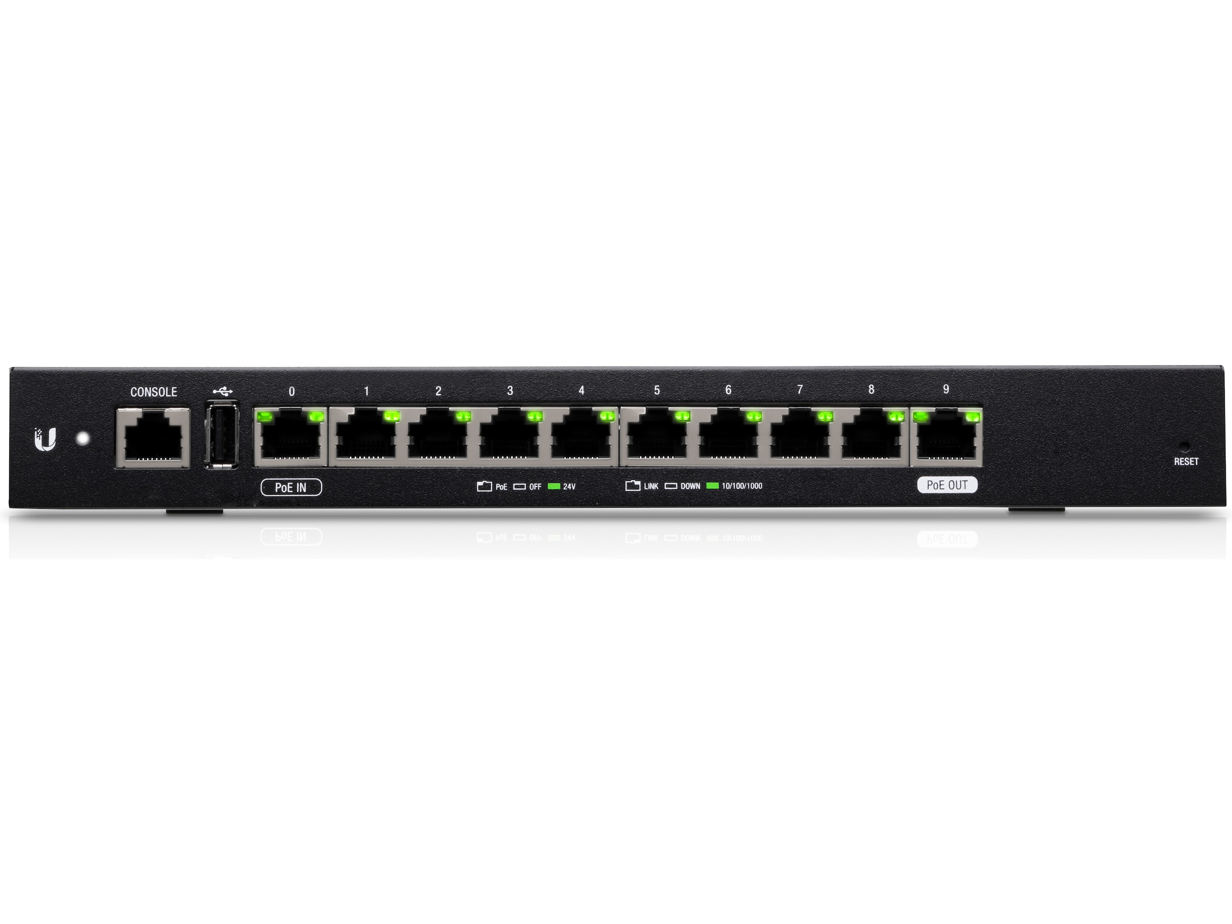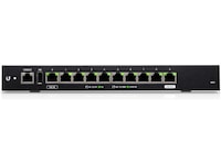 EdgeRouter™ 10X har högsta pris/prestandavärde och är en avancerad Gigabit-router med PoE-flexibilitet. 10x Gigabit RJ45-portar erbjuder kopparanslutning med PoE-ingång på port 1 och PoE-genomgång på port 10. EdgeRouter 10X stöder Layer-2-växling med en intern switch. För skalbar konfiguration, använd EdgeOS® eller UISP®.