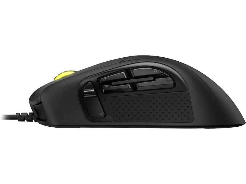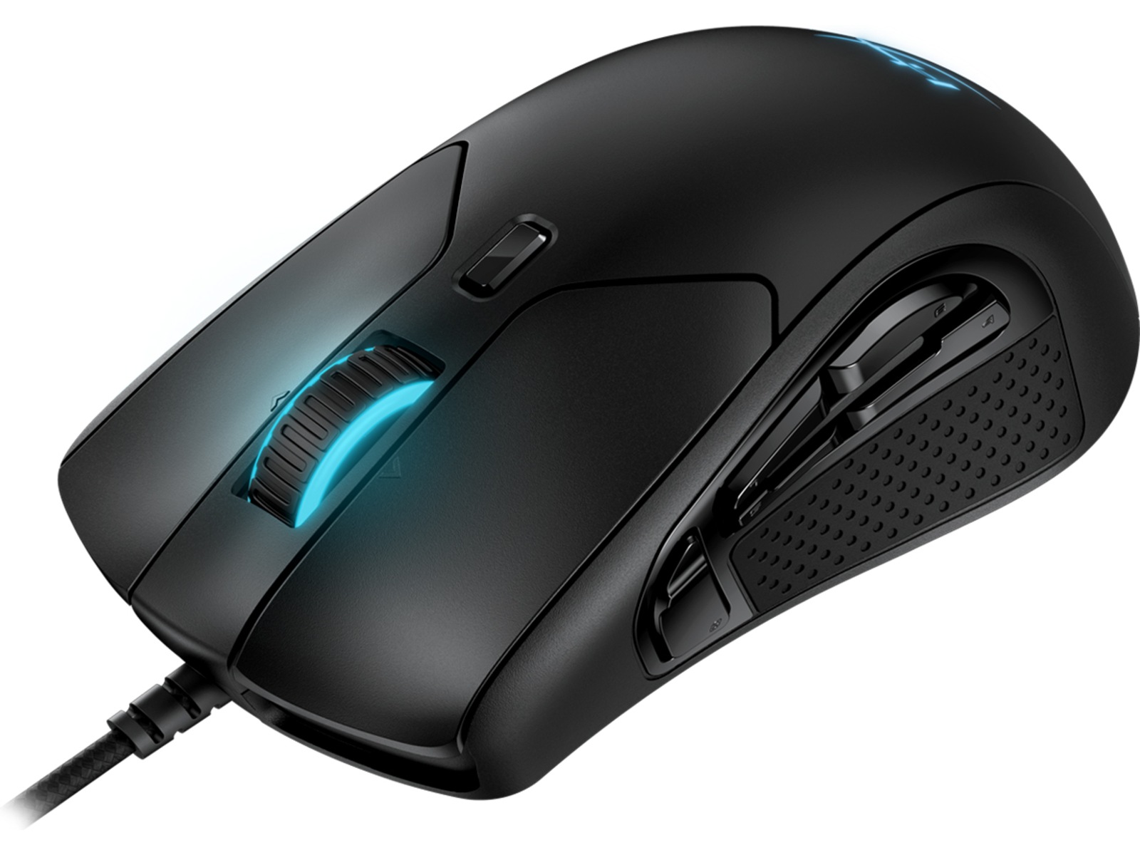 Egenskaper RGB 16,8 miljoners flerfärgsilluminering, OMRON-omkopplare, Pixart 3389 optisk sensor, Flätad kabel