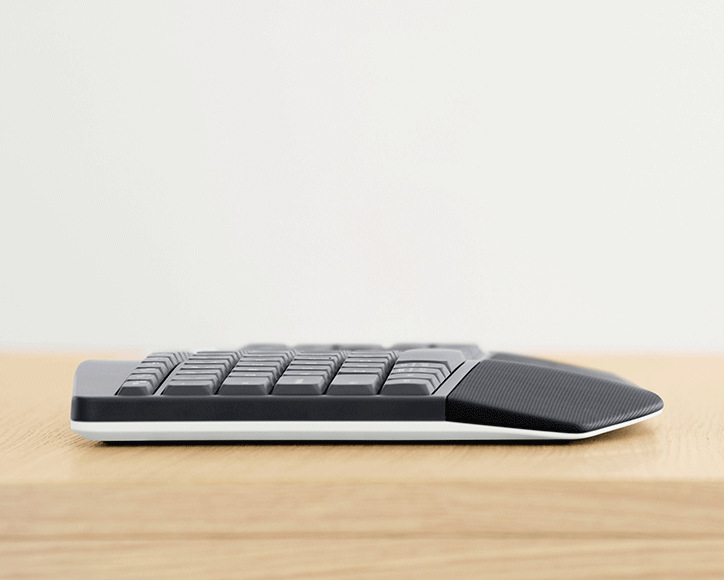 Den vågliknande utformningen hjälper dig att hitta ett naturligt skrivläge. Tangentbordet är fullstort och utformningen är välbekant så du behöver inte ändra ditt skrivsätt.