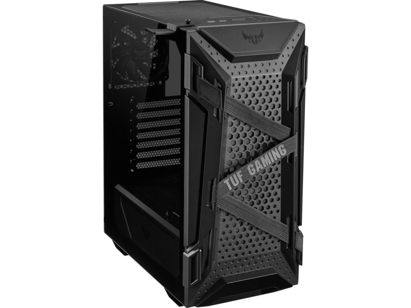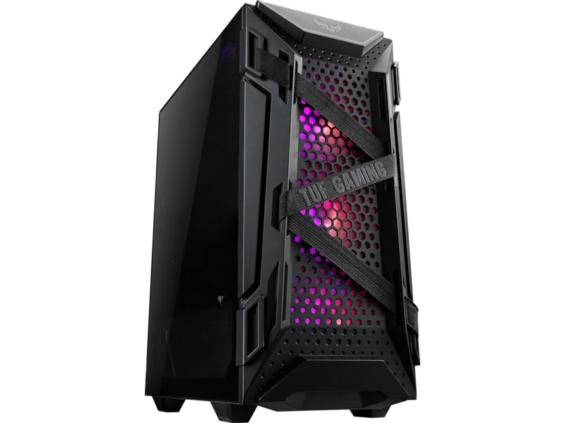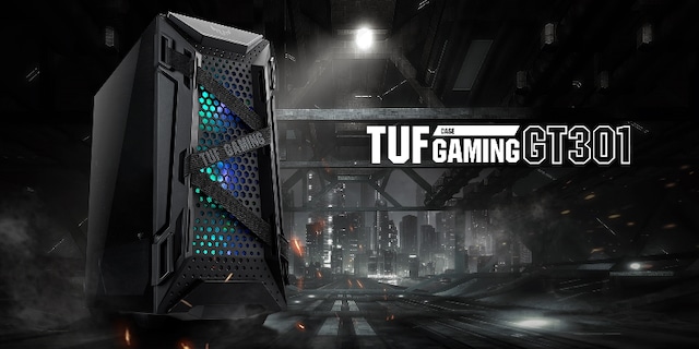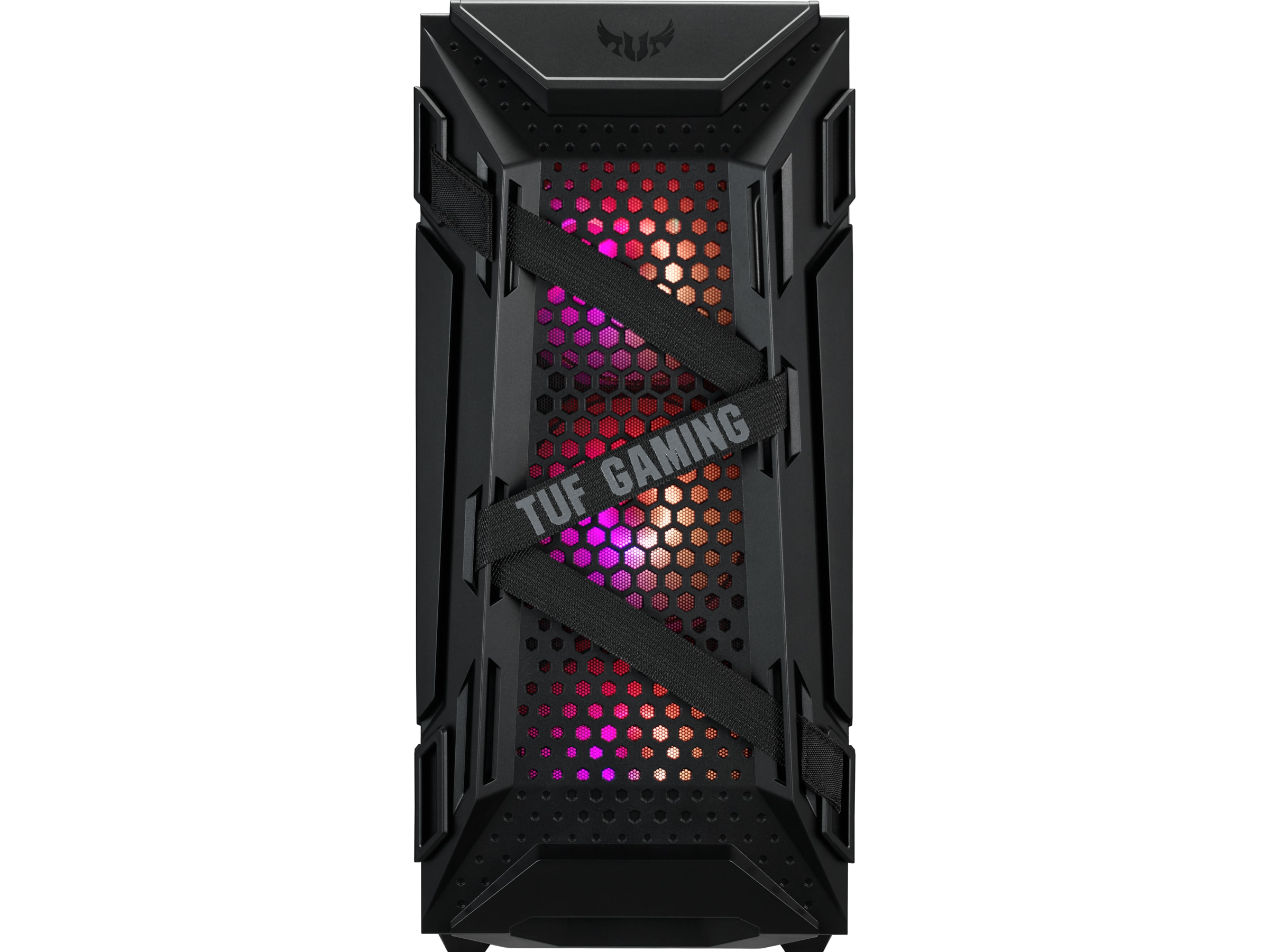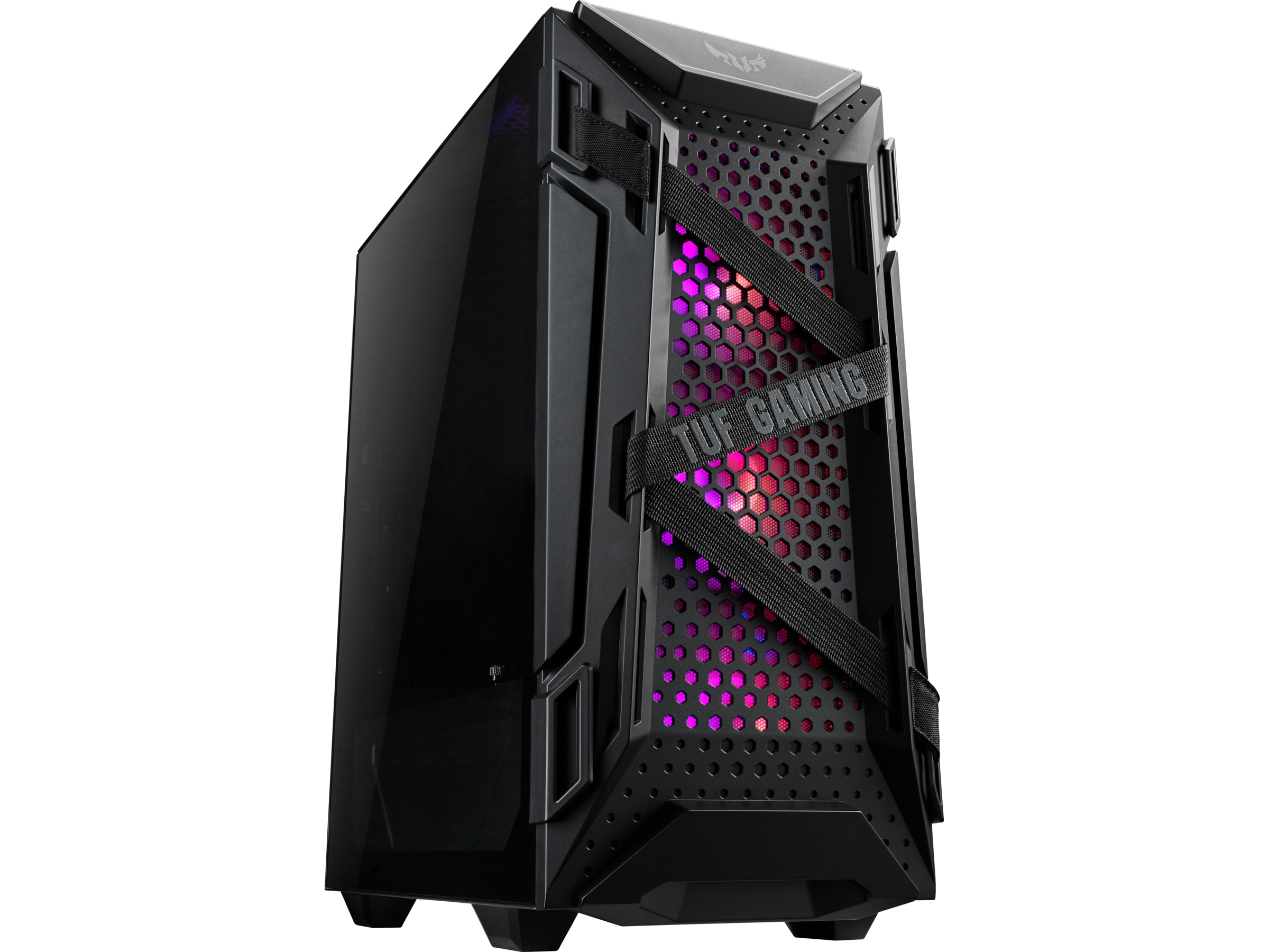 ASUS TUF Gaming GT301 ATX mid-tower compact case with tempered glass side panel, honeycomb front panel, 120mm AURA Addressable RGB fan, headphone hanger and 360mm radiator support.