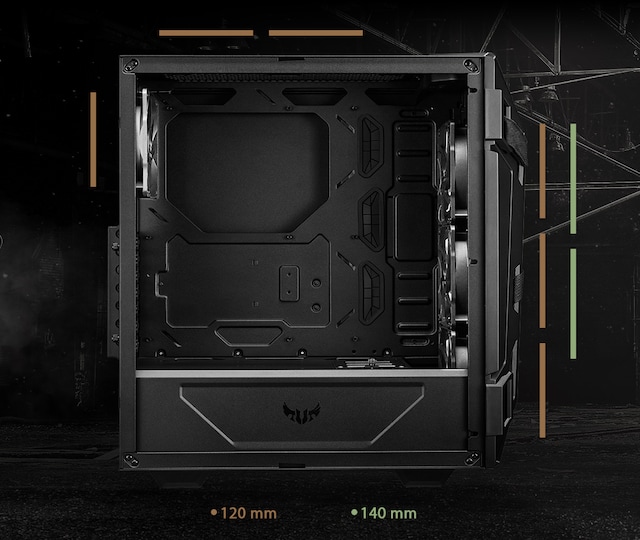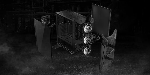 TUF Gaming GT301 is a feature-packed case and made for the masses, the optimized compact case supports up to 4 x 2.5” SSDs, 2 x 3.5” HDDs and quick removal dust filter in front, top and bottom.