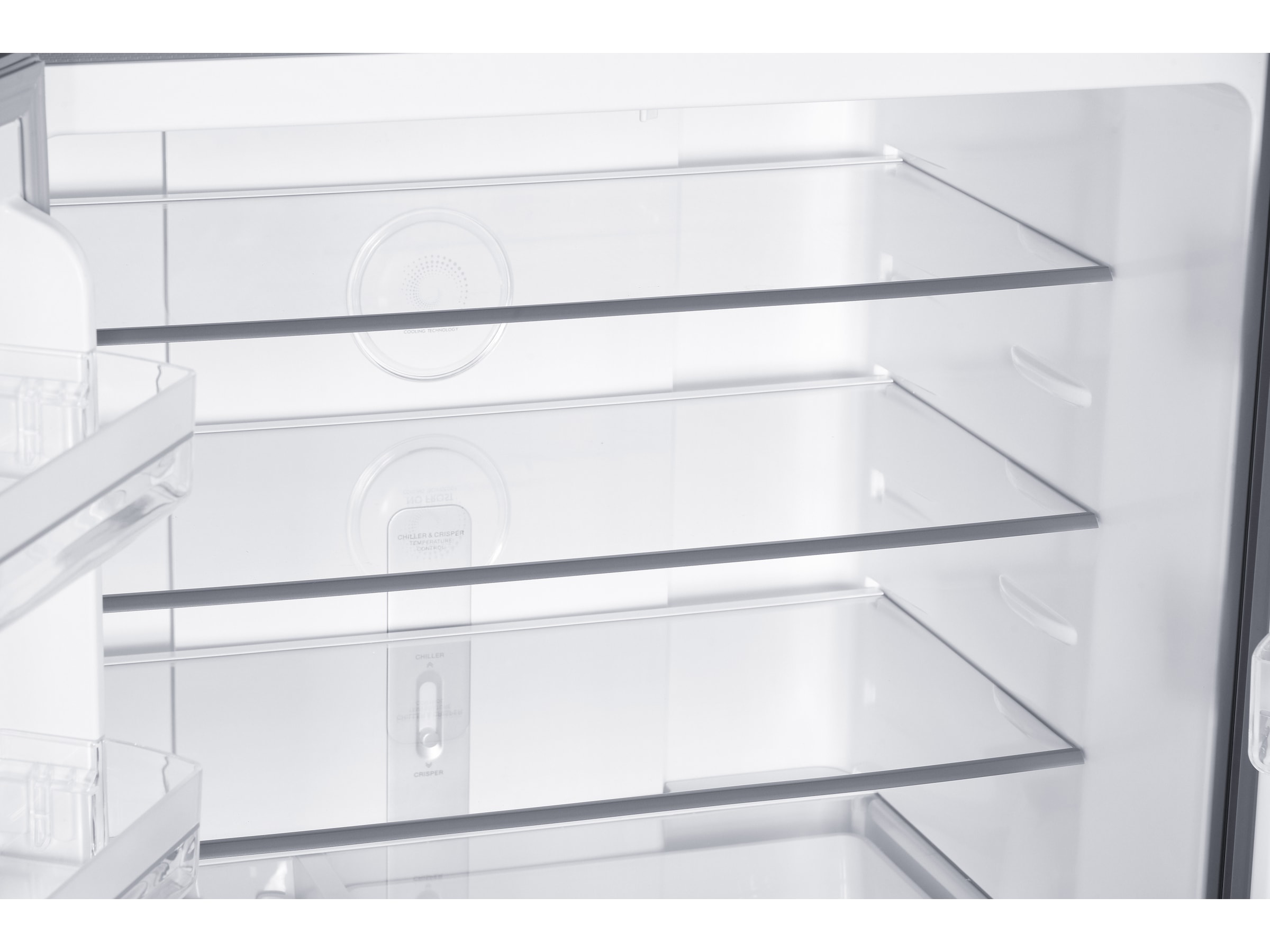 Kylskåpssektionen är utrustad med tre hyllor i varje dörr och det finns tre lådor i varje frysskåp. Kylskåpet har en krisplåda som ger maximal hållbarhet för dina grönsaker. Med en maximal nivå på 42 dB är detta ett tystgående kylskåp.