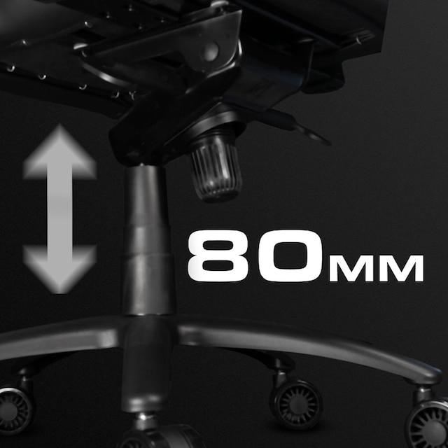 Din nya Svive-stol är lämplig för både korta och långa spelare och kan snabbt justeras till rätt höjd med 4-stegsjustering av gashissen (kan förlängas med hela 80 mm). Stolen tål upp till 150 kg.