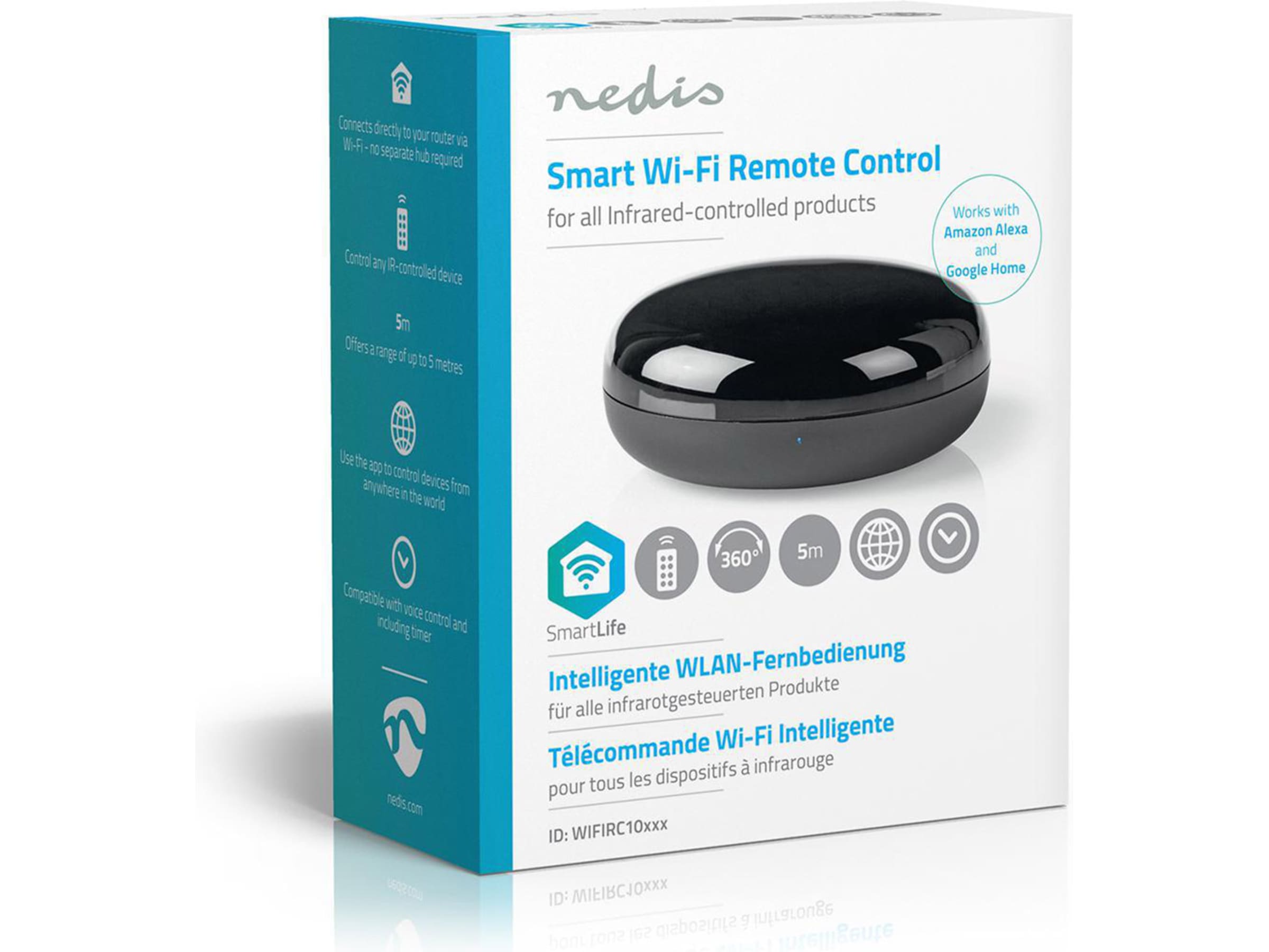 Styr din tv eller IR-styrda klimatanläggning via en app med den här smarta fjärrkontrollen från Nedis®.