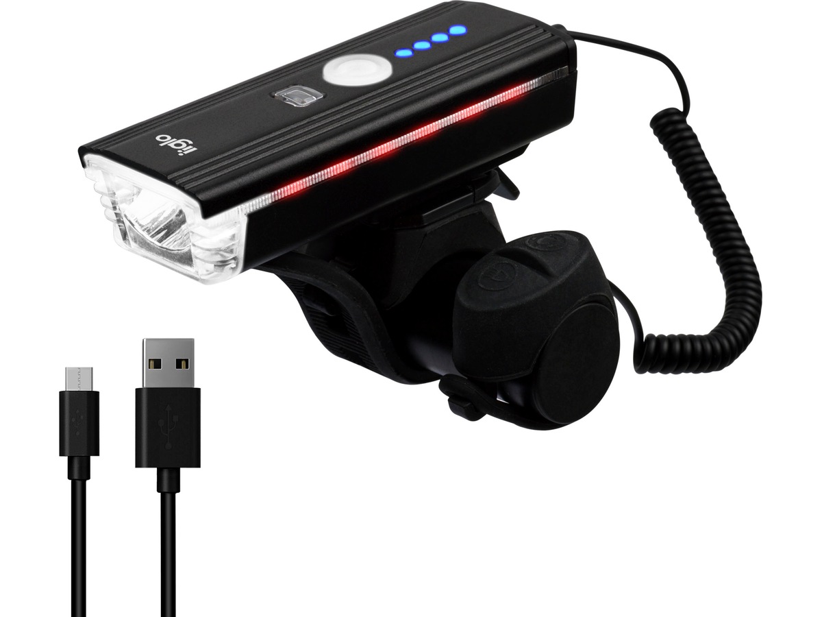 Cykellampa med integrerat batteri 350lm frontbelysning med ringklocka