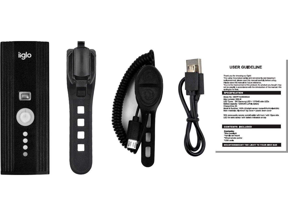 Denna ljusstarka ficklampa är utrustad med Samsung 5W LED-lampa (6000 Kelvin) som ger en ljusstyrka på upp till 350 lumen. Lampan är ett utmärkt inköp för dig som pendlar till jobbet eller skolan. Cykellampan är lätt att sätta på och ta av, vilket innebär att du inte behöver oroa dig för att någon stjäl lampan. Rekommenderad användning är på landsväg och pendling. Denna lampa är också lämplig på trafikerade platser där det kan vara fördelaktigt med en väl hörbar ljudsignal eller ringklocka. Hornsignalen är avtagbar och kan fästas på en lämplig plats separat från lampan.