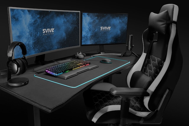Svive Altair gamingskrivbord ger dig extra komfort under långa spelrundor. Bra storlek och stegvis höjdjustering öppnar upp för anpassning som passar din spelstil. En mjuk heltäckande musmatta på 4 mm ger dig bra kontroll så att du blir en ännu bättre spelare, och ditt nya skrivbord blir snabbt en viktig del av den nya spelstation.