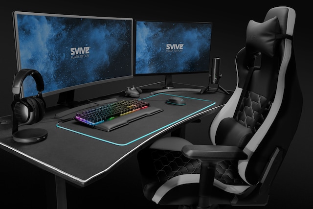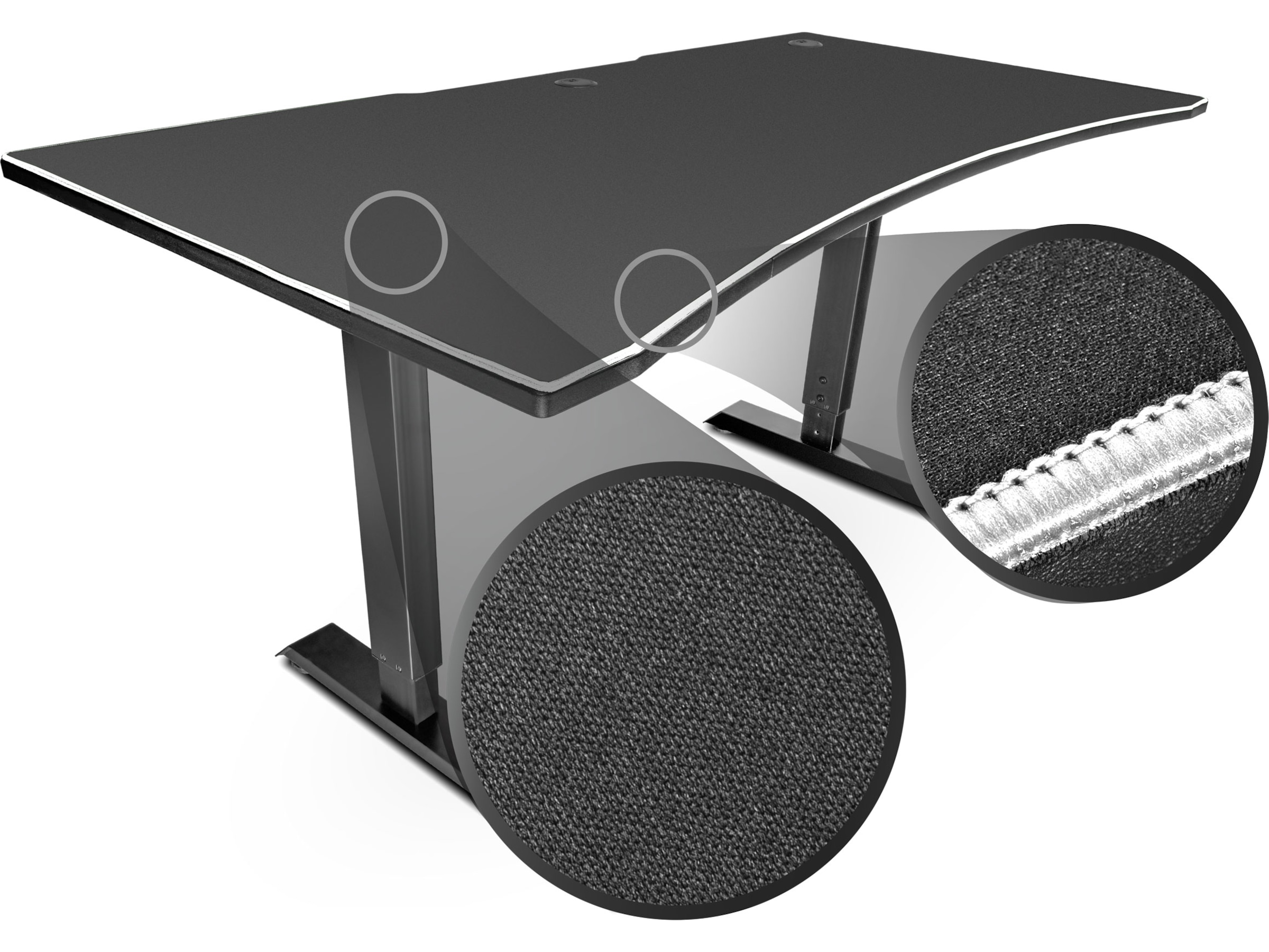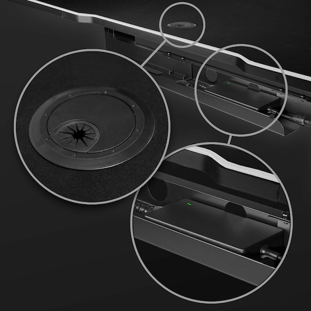 Ovansidan täckt med musdyna, 3 kabelöppningar, 3 höjdjusteringsnivåer |