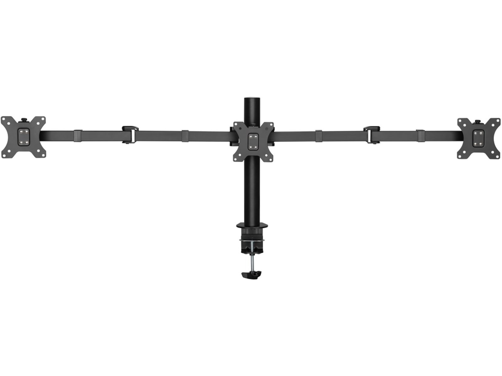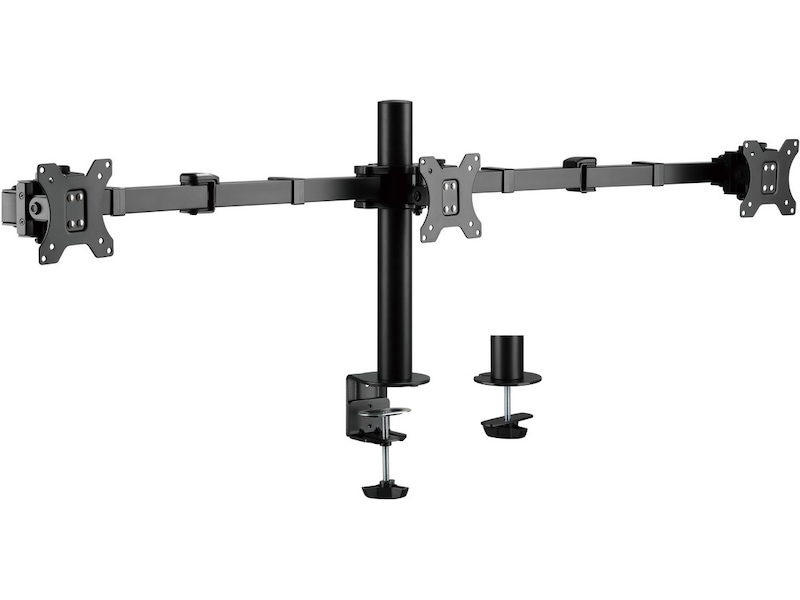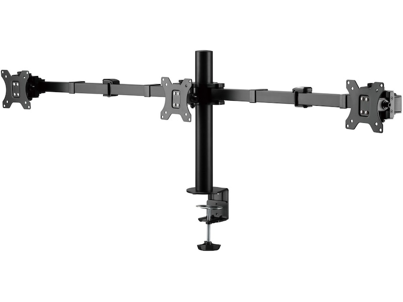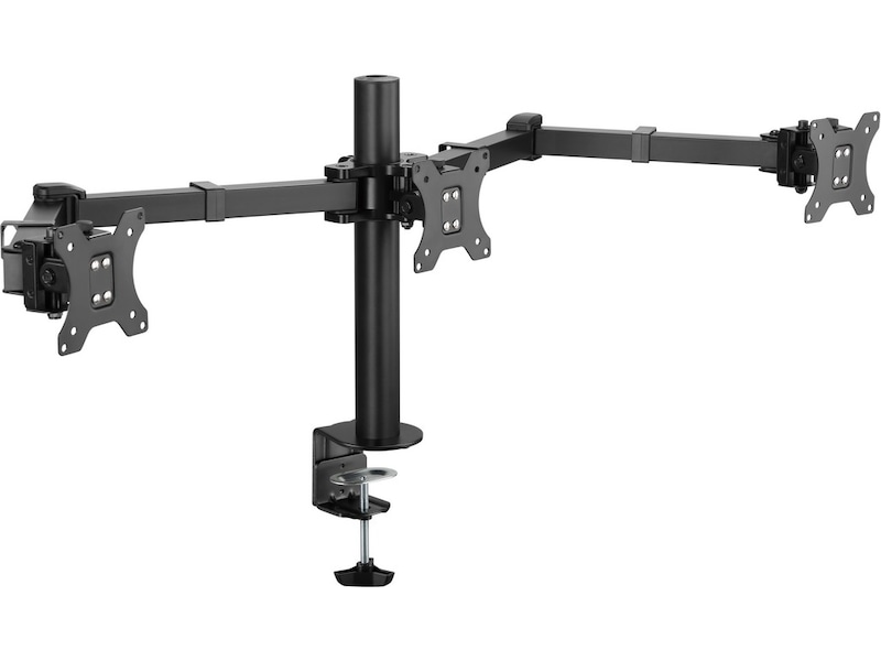iiglo Triple Monitorarm hjälper dig att hålla dig produktiv på kontoret genom att du kan montera upp till tre skärmar samtidigt och frigöra utrymme på ditt skrivbord. Bildskärmsfästet levereras med både en 75/100 mm VESA-platta, som möjliggör en enkel installation av de flesta bildskärmar i storleken 17 till 24". Ställ enkelt in dina bildskärmar i en position som passar dig bäst!