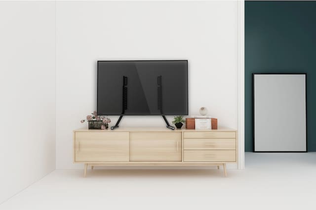 - T-formad konstruktion i massivt stål: Ger större stabilitet för att förhindra att TV:n välter