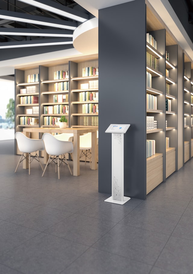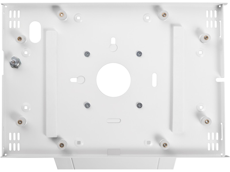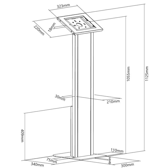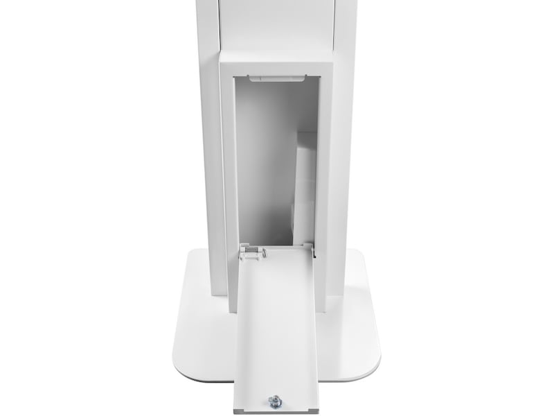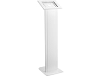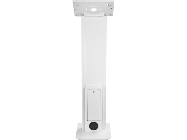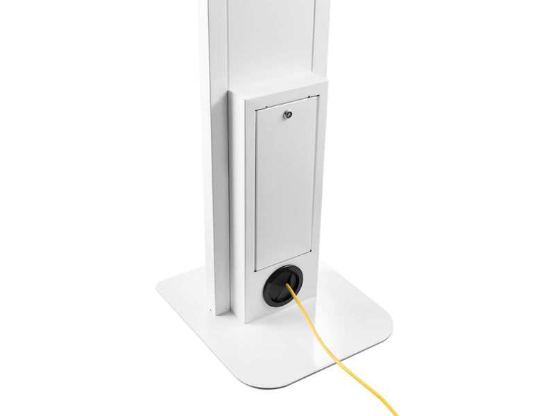 Med en låsbar ram och högkvalitativ stålkonstruktion är iiglo IIMT142 fristående golvstativ ett säkert, elegant och prisvärt val vid användning av surfplattor för att förmedla information eller reklam i offentlig miljö. Liggande eller stående montering är möjligt för att tillgodose olika visningsbehov. Mjuka EVA-kuddar inuti ramen skyddar enheten mot repor och slitage. Den släta frontpanelen erbjuder gott om utrymme för branding och grafik. Det finns också ett låsbart skåp med plats för laddare, kablar och andra tillbehör. Kabeldirigeringen håller kablarna organiserade och skyddade.