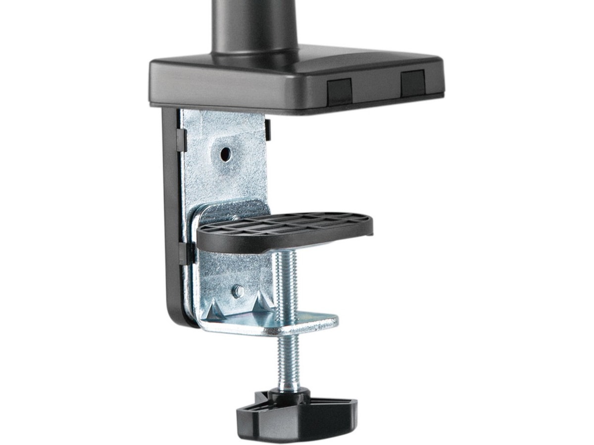 iiglo Monitor Arm kan fästas med antingen en c-klämma eller en hylsa. För att skydda skrivbordets yta från repor och hålla monitorarmen stabil, kommer de båda med halkfria silikonkuddar.