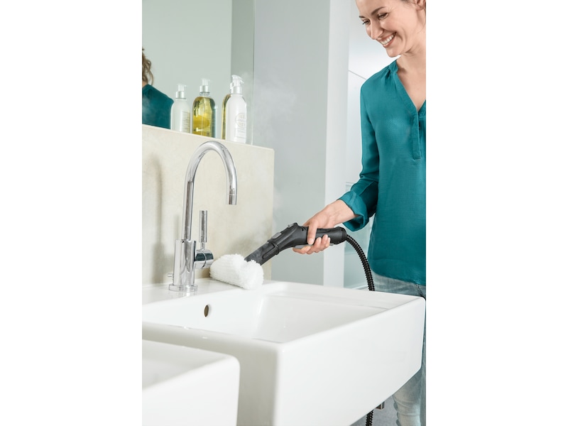 Mycket praktisk och innovativ lösning för fastsättning och byte av rengöringsduk. Ångintensiteten kan justeras i förhållande till underlag och mängd smuts. Brett urval av tillbehör för noggrann rengöring av beslag, kakelplattor, kokplattor, spiskåpa samt små sprickor och hål. Ingrodd smuts avlägsnas snabbt och enkelt. SC 4 rengör utan rengöringsmedel och är därför mycket lämplig för användning i hemmet. Rengör alla typer av hårda ytor och dödar 99,99 % av hushållsbakterierna.