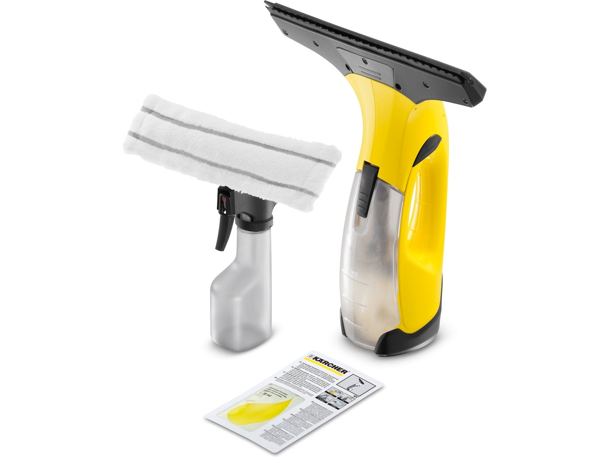 Fönsterputsare WV 2 Plus är en batteridriven vattensugenhet för optimal och randfri rengöring av fönster och glasytor utan vattenspill. Setet inkluderar sprayflaska med rengöringsduk och rengöringskoncentrat.