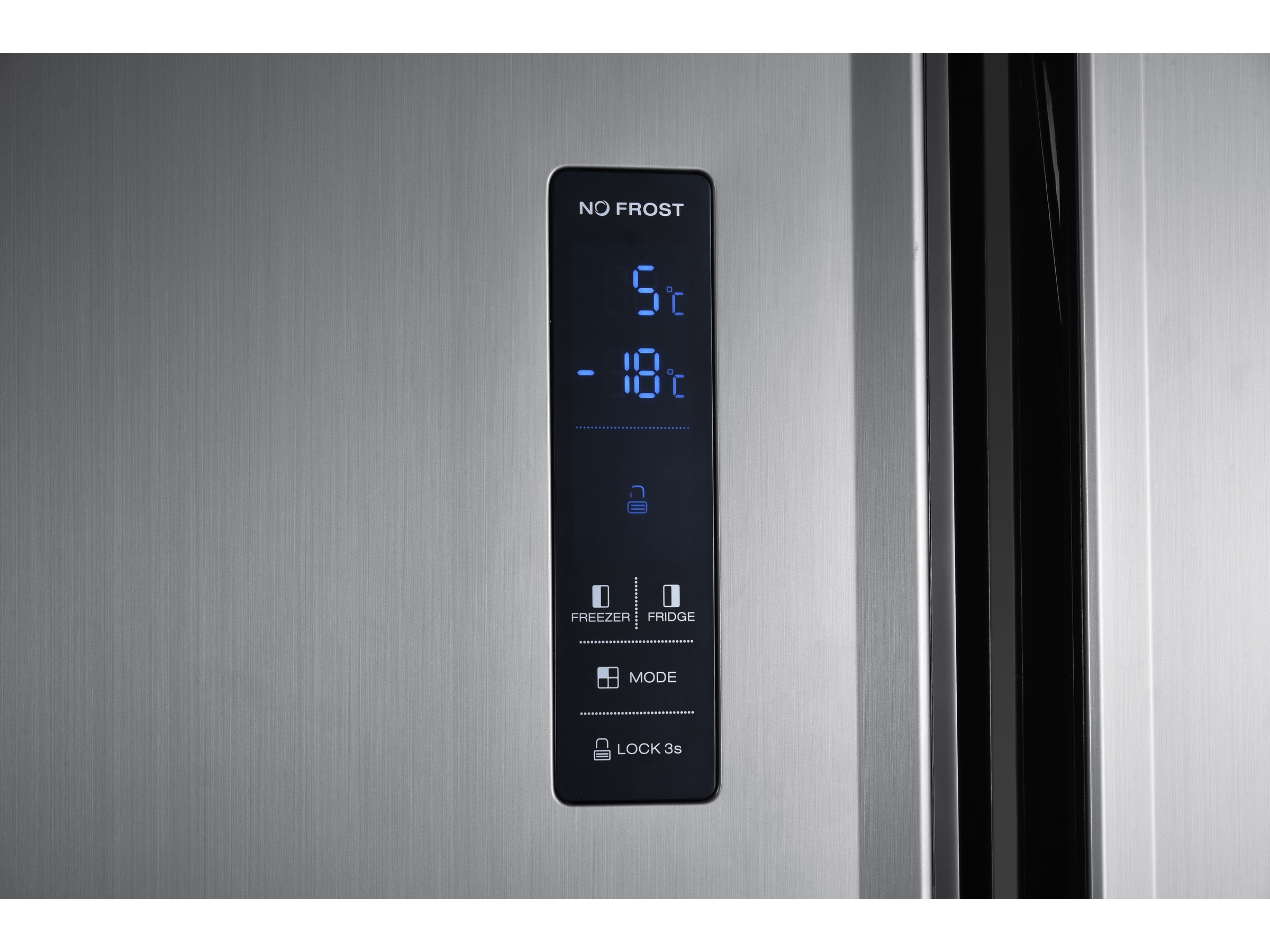 Framsidan i rostfritt stål ger ett elegant intryck och passar i de flesta kök med dess 90 cm bredd och 177 cm höjd. Elektronisk temperaturreglering ger dig full översikt. Ditt nya iiglo Side by Side-kylskåp blir ett blickfång i köket.