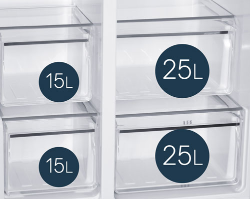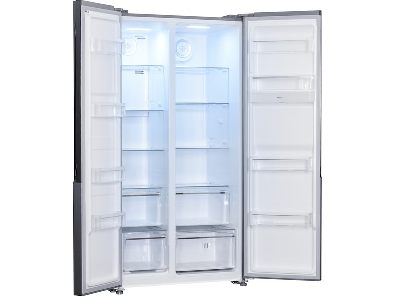 Kylskåpet har en kapacitet på 341 liter och frysen en kapacitet på 177 liter. Den totala nettokapaciteten på 518 liter gör detta till ett Side by Side-skåp med enorm kapacitet för dina drycker och matvaror.