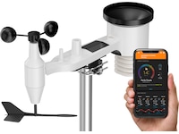 Du kan enkelt spåra vädret med Protechs trådlösa prognosstation. Övervaka temperaturtrender, fuktfluktuationer, vindriktning och hastighet, UV-strålning, barometertryck och regnnederbörd. Anslut till ett nätverk av väderstationer och se din meteorologiska statistik och trendhistorik på din smartphone eller dator: det har aldrig varit enklare att spåra data! Få information om ditt lokala väder utan att sätta en fot utomhus!