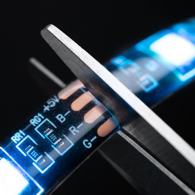 Skapa enkelt din egen LED-list med anpassad längd genom att helt enkelt klippa av den vid en av skärpunkterna mellan varje LED-chip. Detta möjliggör en perfekt montering av din ljuslist även där utrymmet är begränsat, vilket skapar en RGB-underglöd eller bakgrundsbelysning för ditt skrivbord, din spel-PC, bildskärm, TV, soffa eller säng.