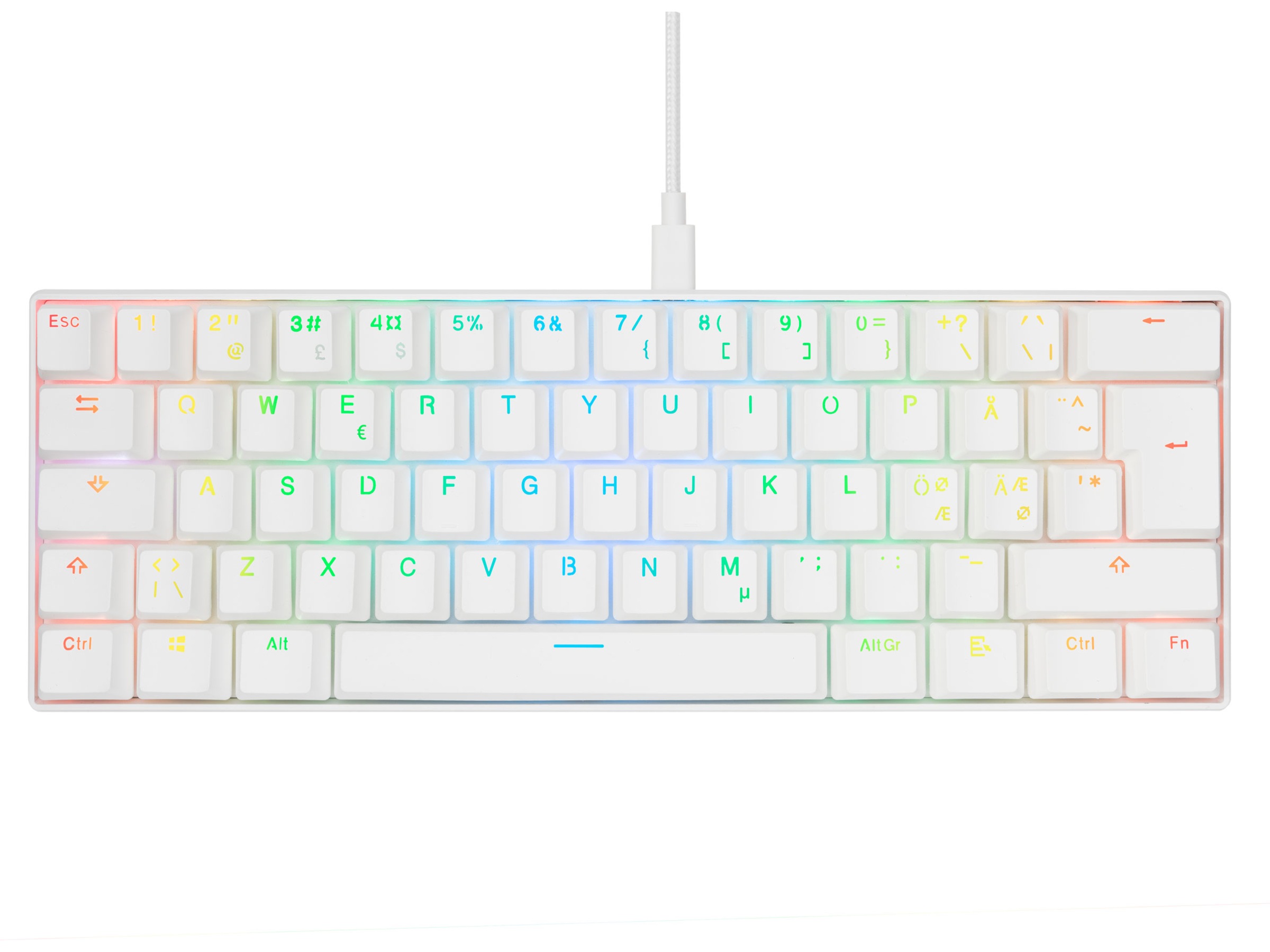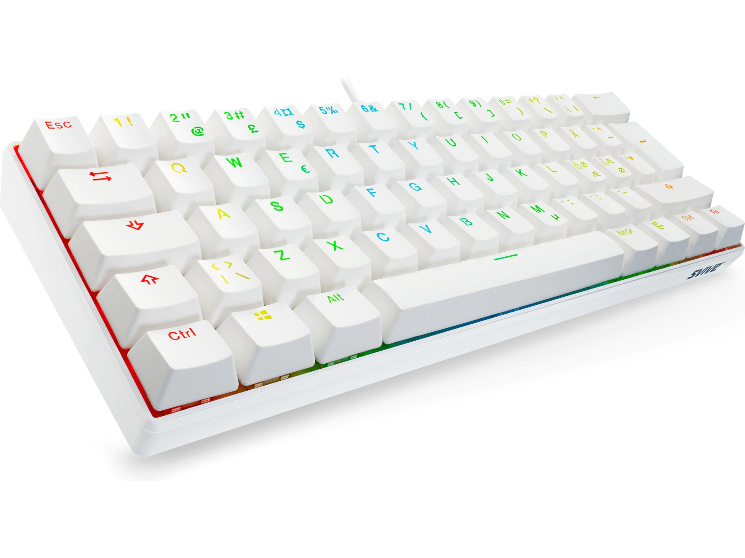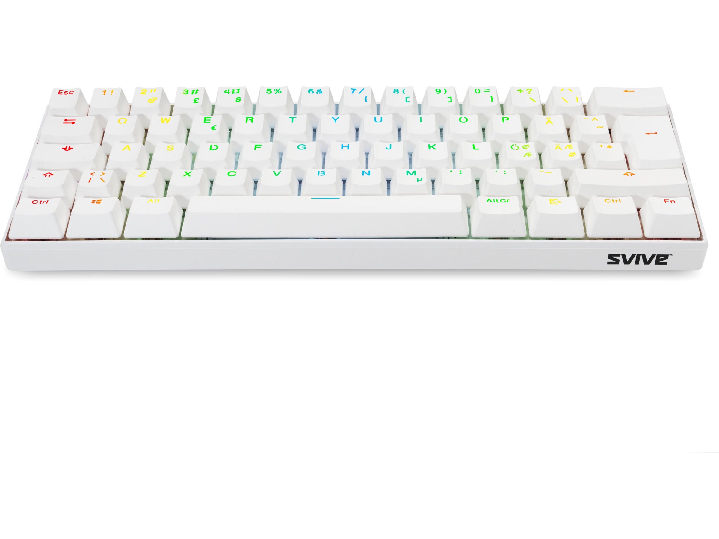 Svive Triton Mini är precis rätt tangentbord för alla minimalistiska spelare där ute. Det här tangentbordet är utrustat med blå taktila och klickbara switchar och ger dig en tillfredsställande hörbar feedback. Dess 60-procentiga 62-tangentförsedda nordiska layout och praktiska design gör det till ett perfekt komplement till din uppsättning hemma eller när du är på språng, samt ger dig ett snyggt och organiserat skrivbord var du än är. Stick ut i mängden med ditt nya minimalistiska vita Svive Triton!