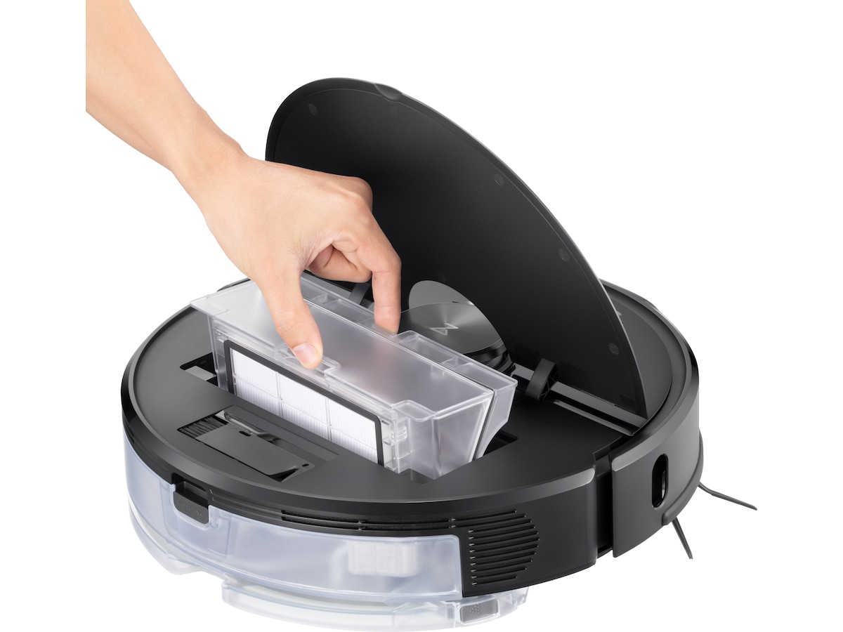 Med två kameror ser den inte bara hinder i sin väg, utan beräknar deras exakta plats och storlek och dirigerar om sin rutt därefter. Tillsammans med LDS-navigationssystemet hittar den snabbt och effektivt hem till laddstationen så fort den är klar med dagens städning eller om strömnivån är låg. Denna robotdammsugare har en batteritid på 3 timmar.