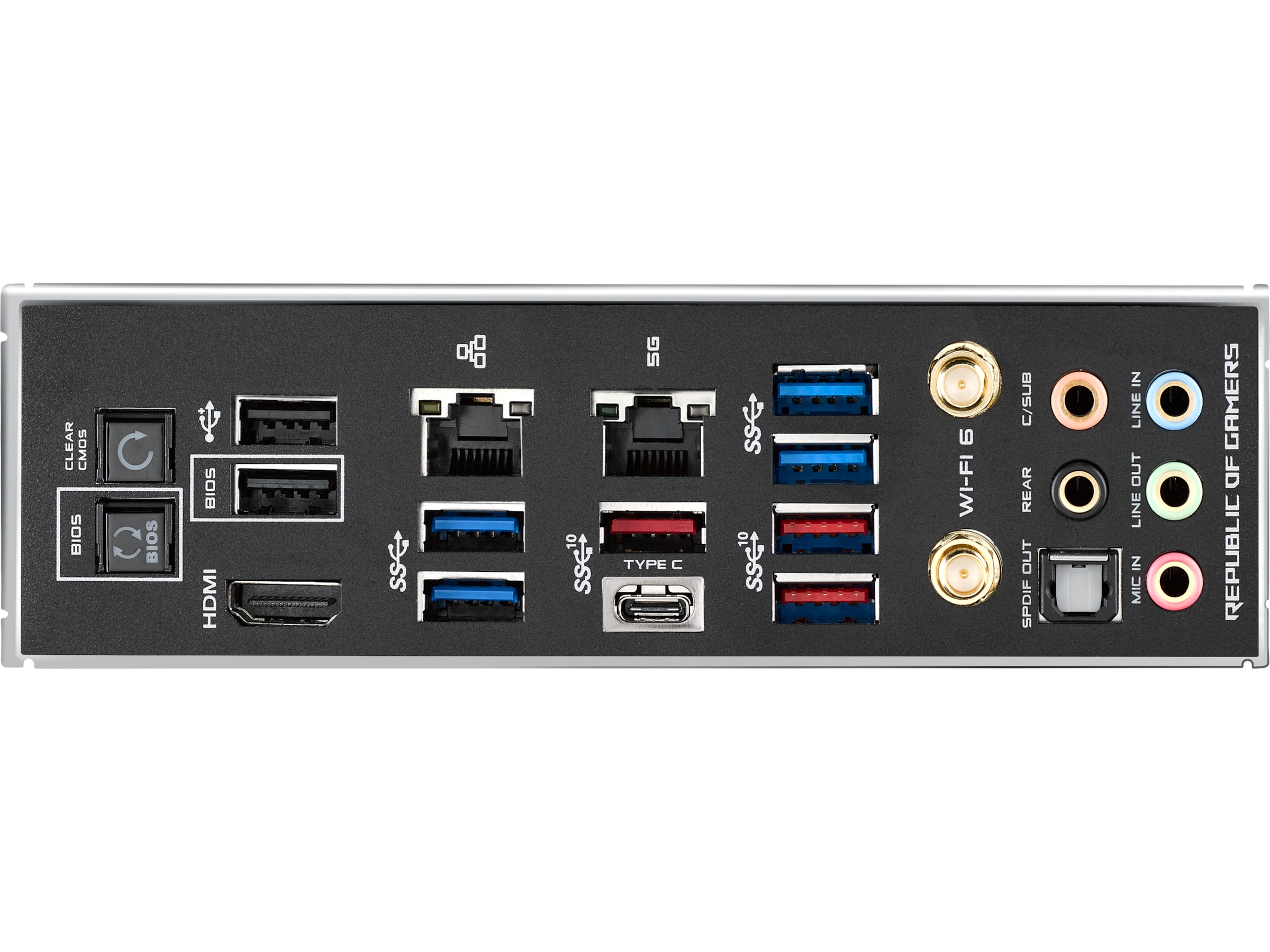 | Gränssnitt | 1 x ljudingång - mini-jack, 1 x mikrofon - mini-jack, 1 x LAN (5Gigabit Ethernet), 1 x ljudutgång (bakre) - mini-jack, 1 x HDMI, 1 x LAN (Gigabit Ethernet), 3 x USB 3.2 Gen 2, 1 x ljudutgång (center/subwoofer) - mini-jack, 4 x USB 3.2 Gen 1, 1 x TOSLINK, 2 x USB 2.0, 1 x USB-C Gen2 |