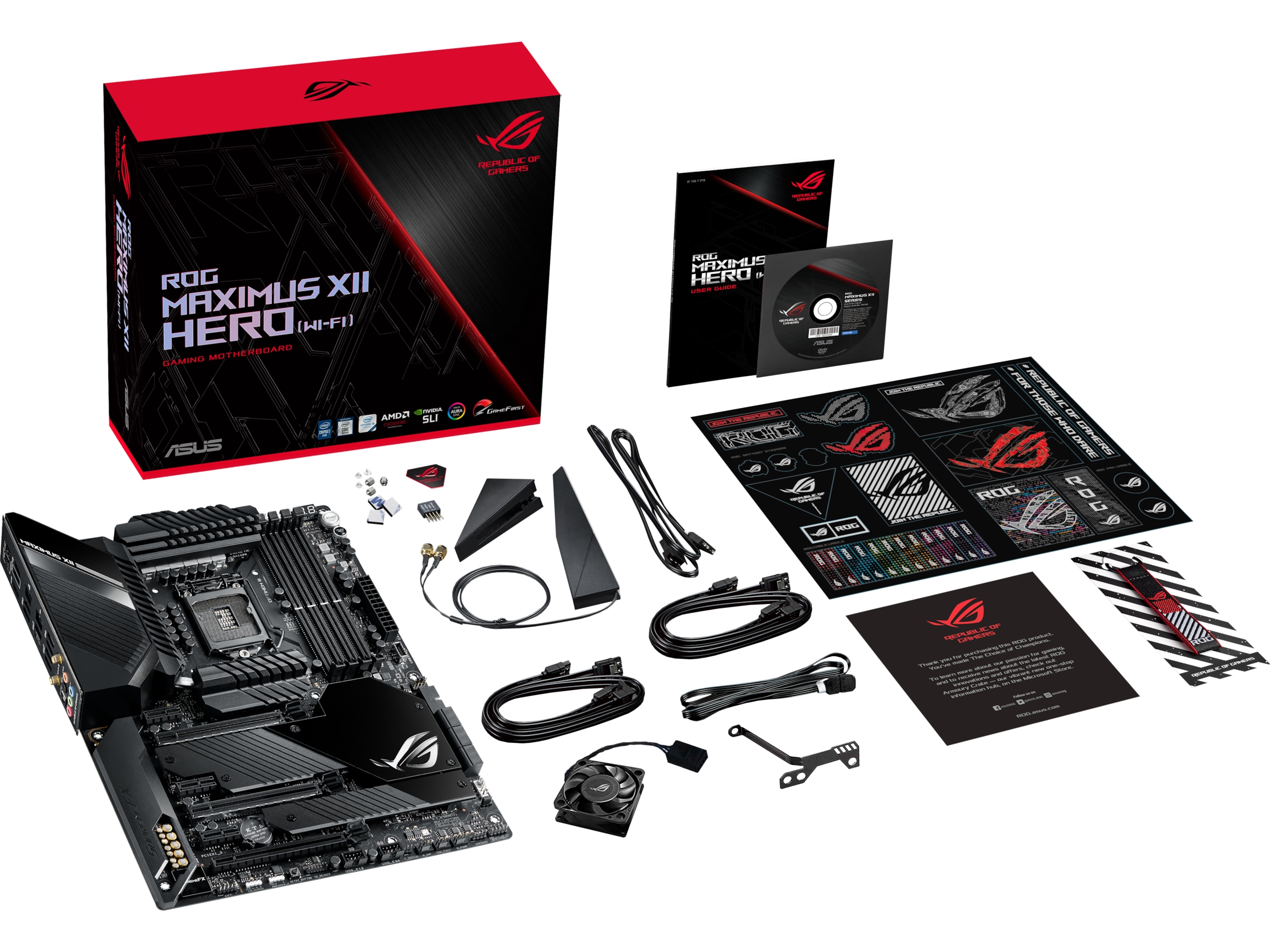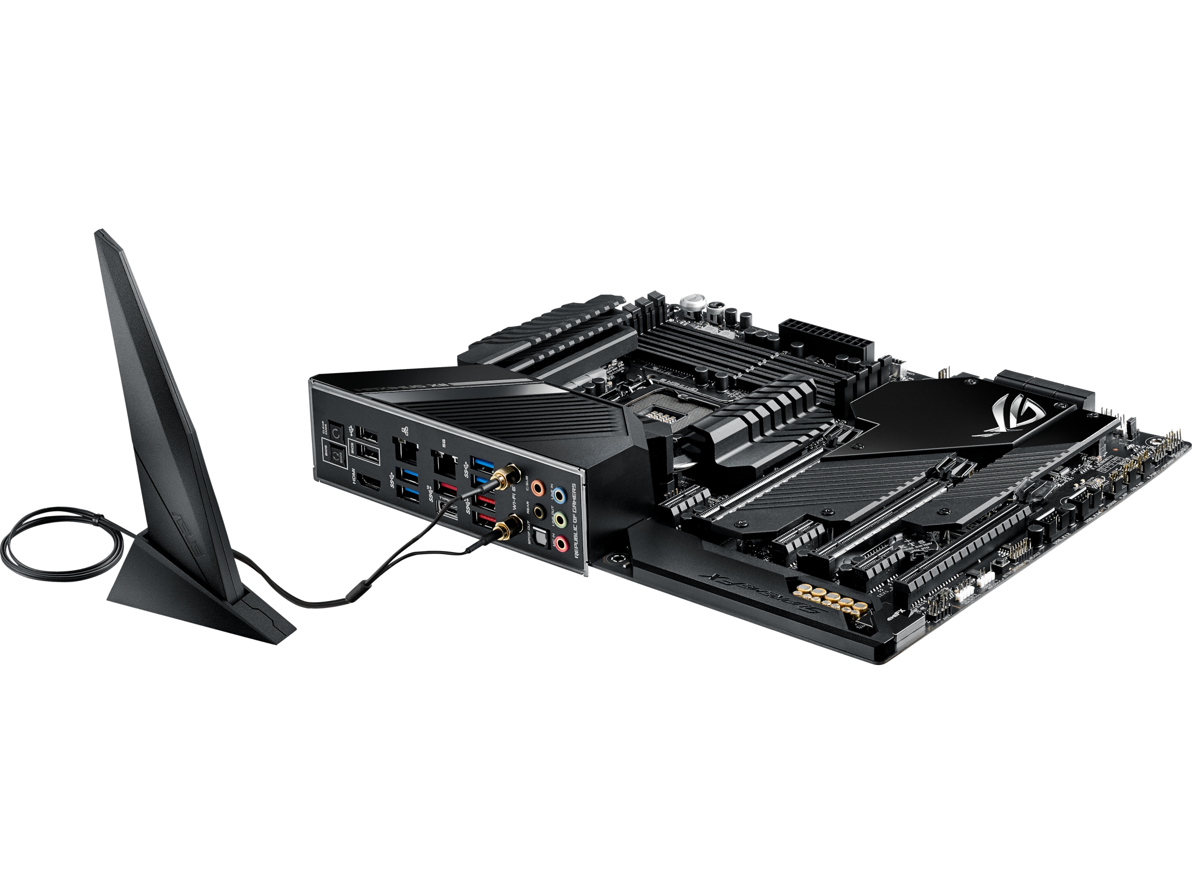 | Inkluderade tillbehör | RGB (RGBW) förlängningskabel till LED-remsa, ROG-nyckelring, Extern antenn, MOS-kylningssats, Q-Connector, Gummidyna, 2 x M.2-skruvar, ROG tackkort, RGB riktbar förlängningskabel för LED, ROG fläktklistermärken, ROG-logotypsplåtetikett |